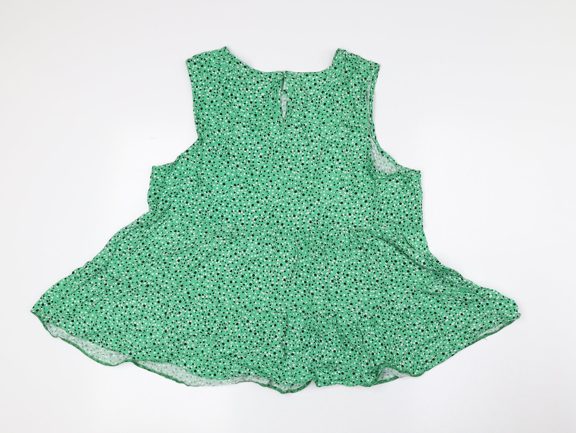 Womens Green Polka Dot Viscose Basic Tank Size 16 Round Neck