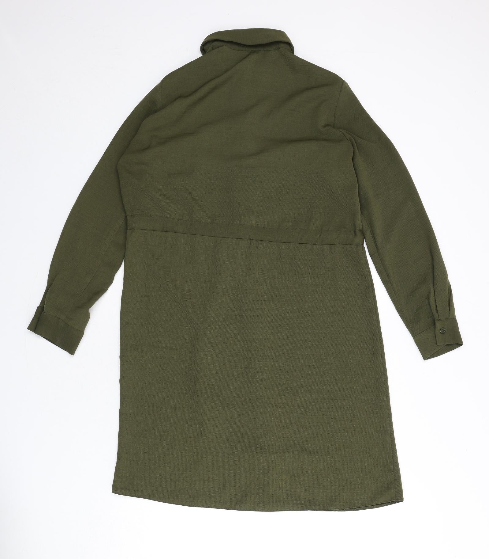 Womens Green Polyester Sheath Size 8 Collared Button - Tie Detail