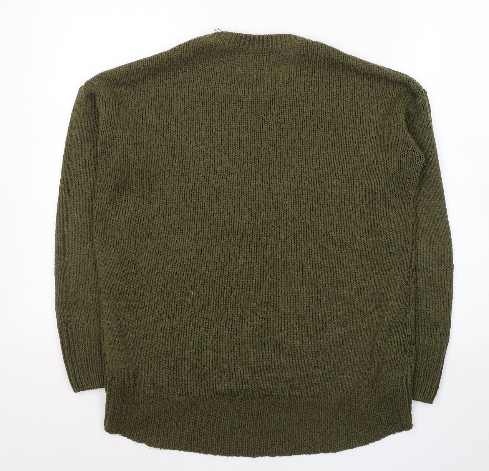 Womens Green Round Neck Acrylic Pullover Jumper Size S