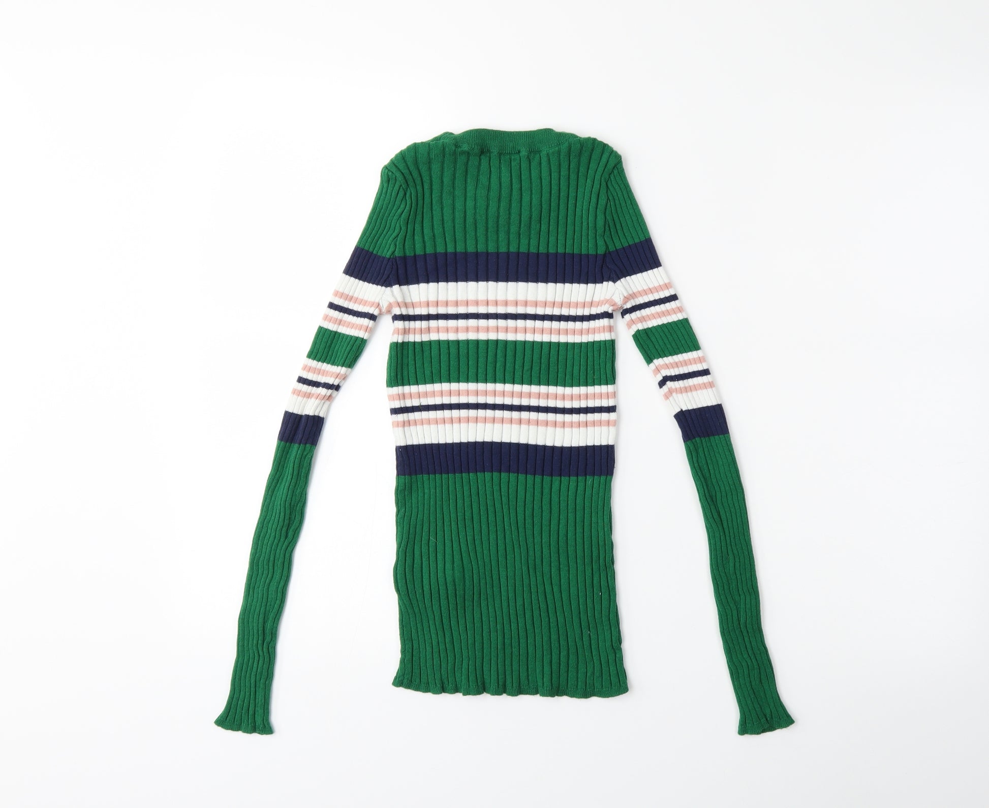 Womens Green Striped Knit Pullover Jumper Size 8