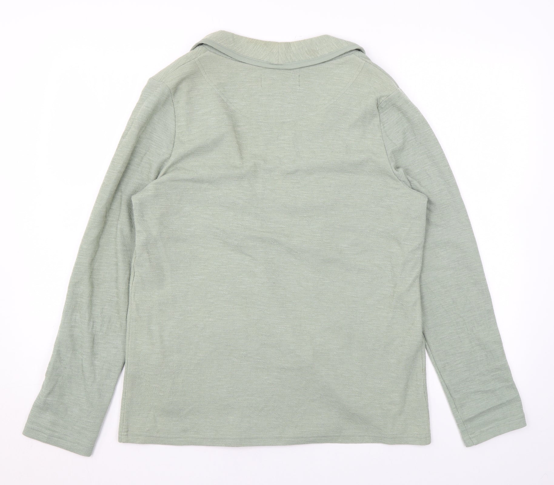 Womens Green V-Neck Cotton Cardigan Jumper Size 12
