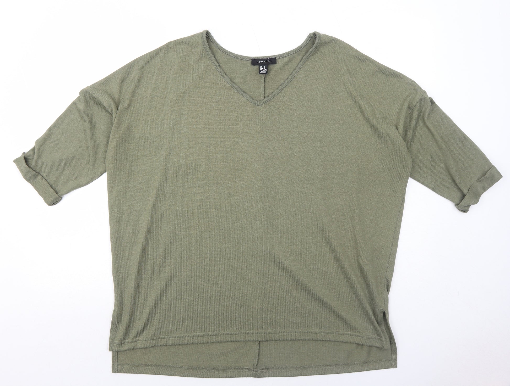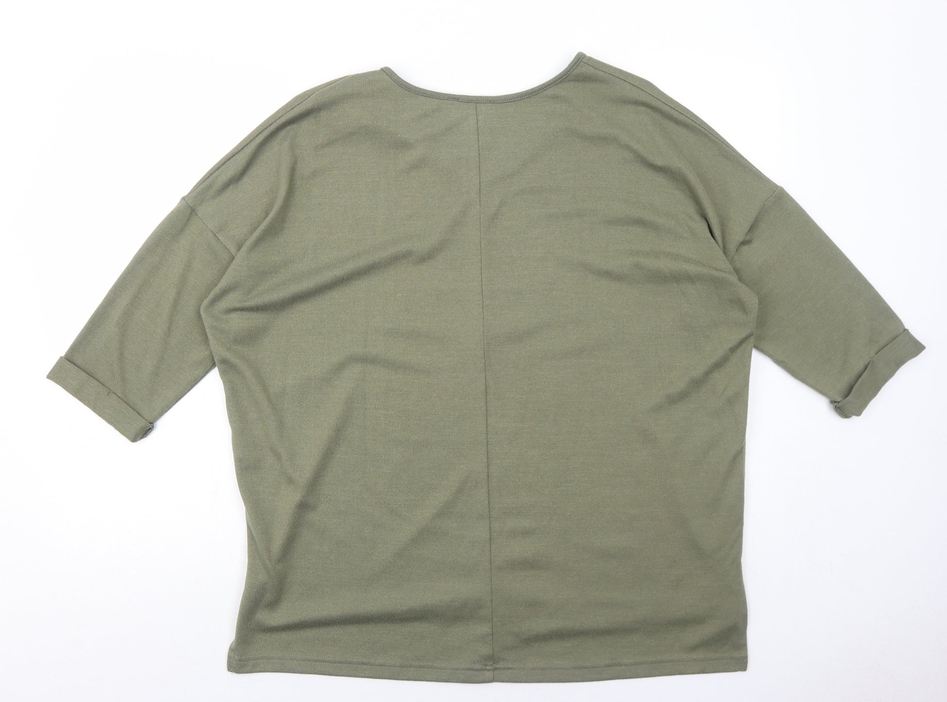 Womens Green V-Neck Polyester Pullover Jumper Size M