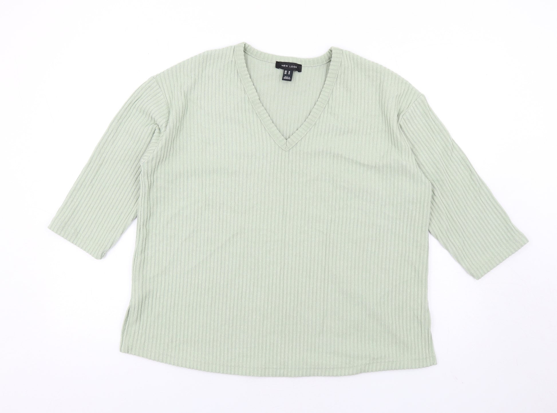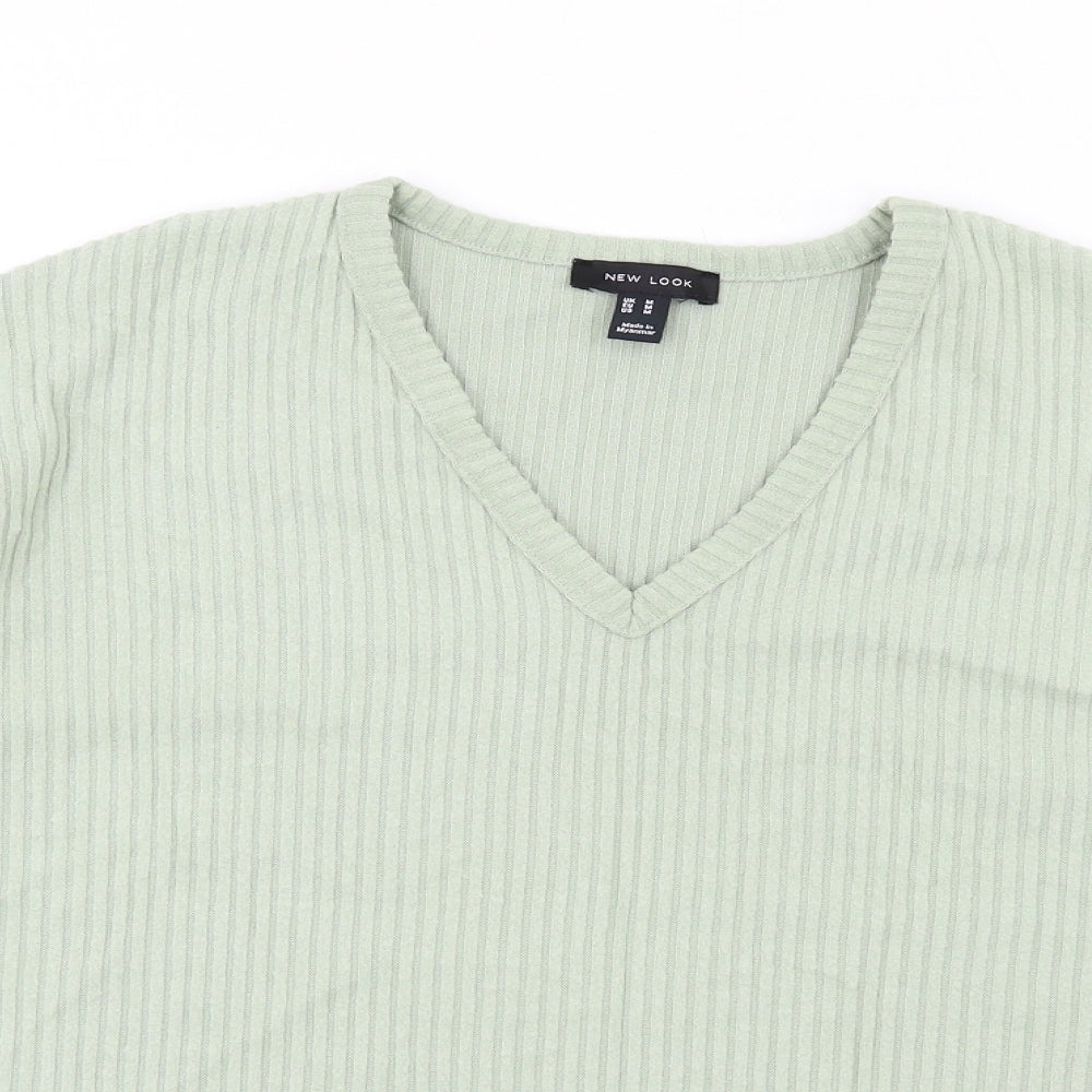 Womens Green V-Neck Polyester Pullover Jumper Size M
