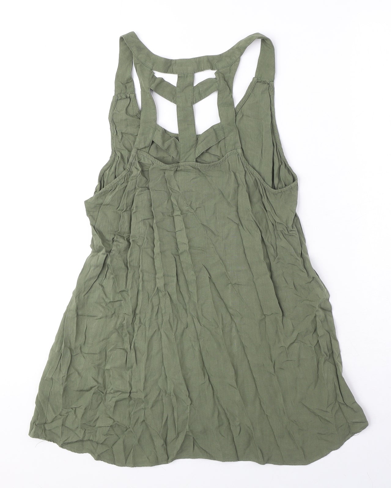 Womens Green Viscose Basic Tank Size 10 Round Neck - Cut Out Detail