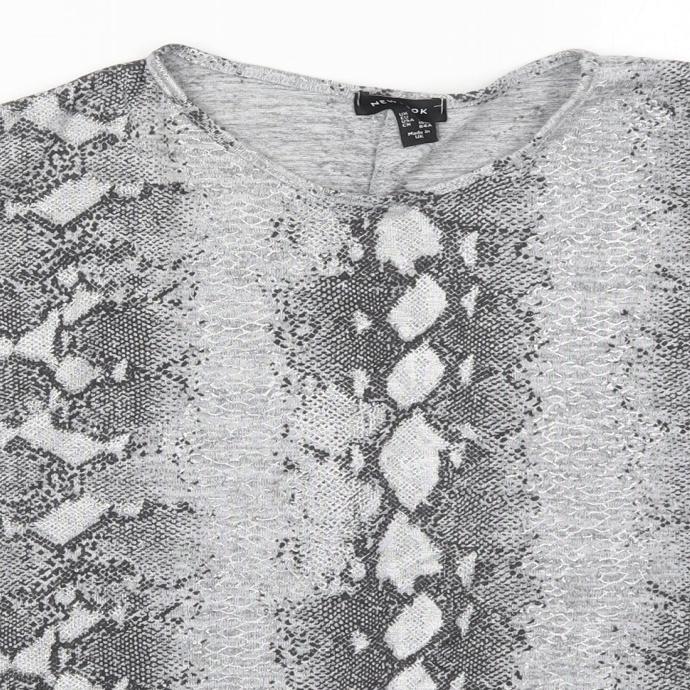 Womens Grey Animal Print Polyester Basic T-Shirt Size M Round Neck