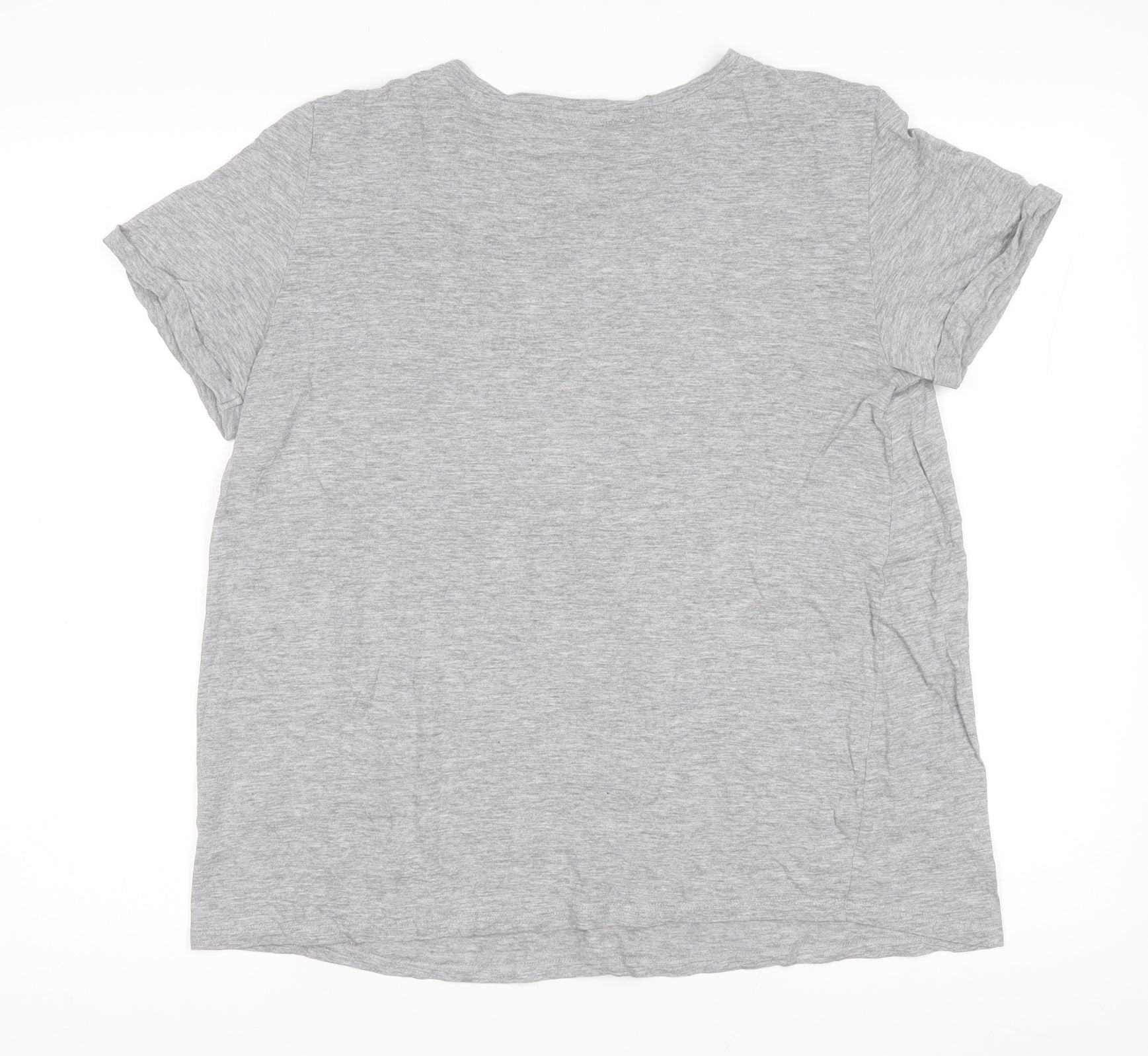 Womens Grey Cotton Basic T-Shirt Size 14 Round Neck