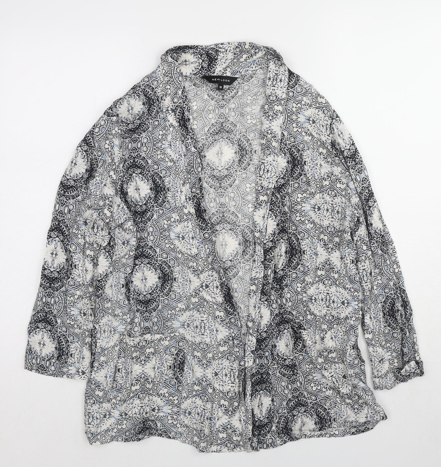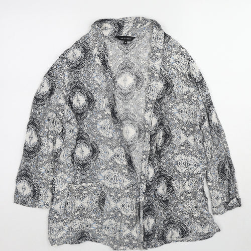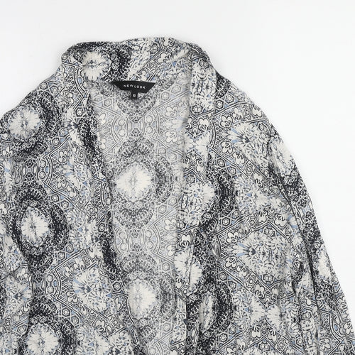 Womens Grey Geometric Viscose Kimono Blouse Size 10 V-Neck