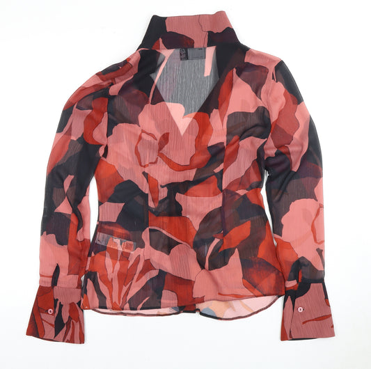 French Connection Women's Red Animal Print Chiffon Blouse Size 10