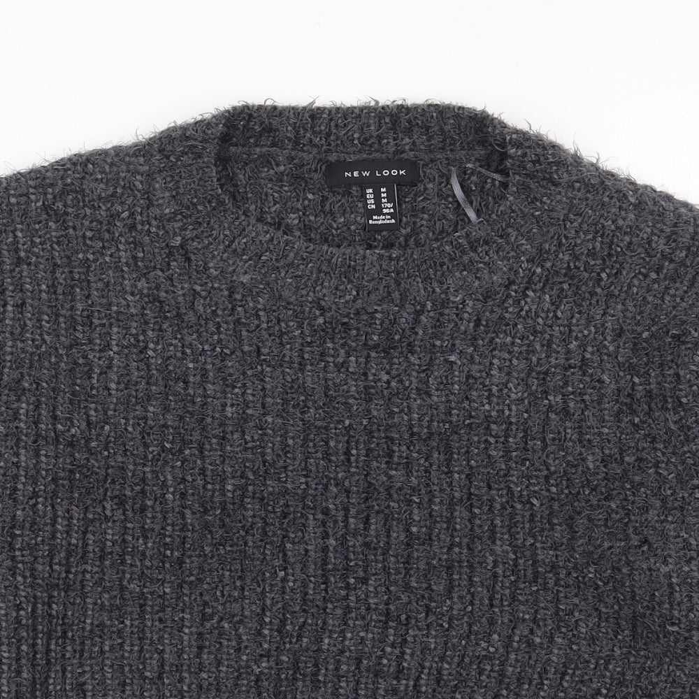 Womens Grey Mock Neck Polyester Pullover Jumper Size M - Cropped