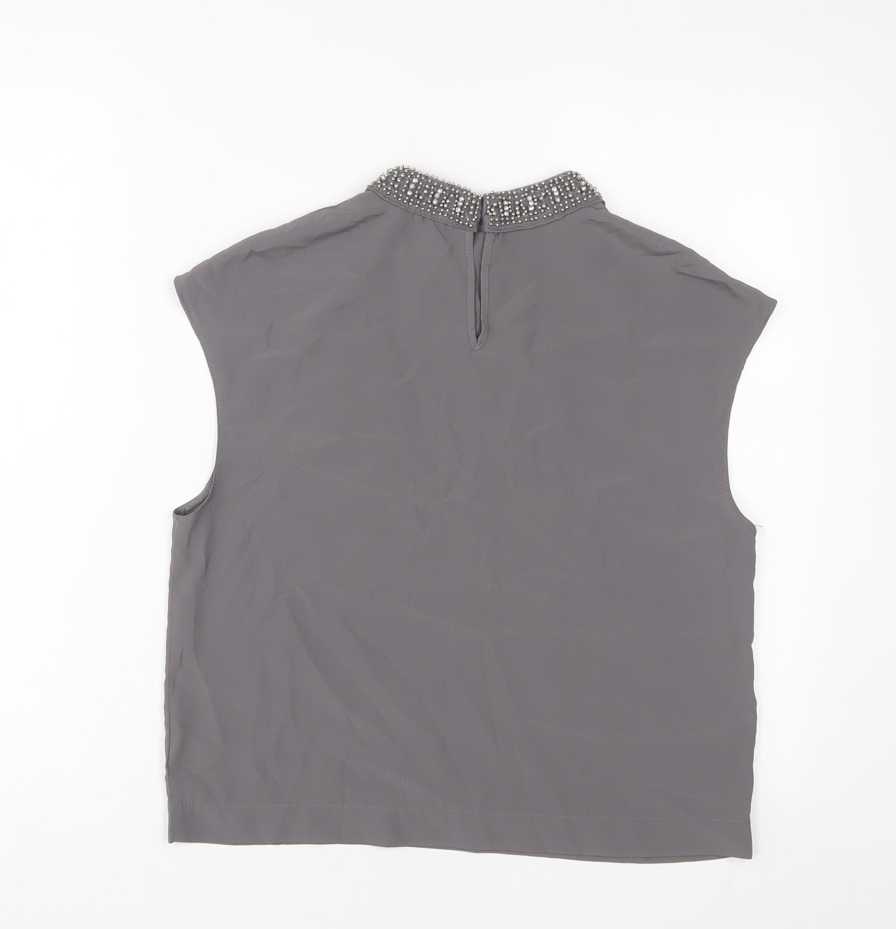 Womens Grey Polyester Basic Tank Size 10 Round Neck - beaded