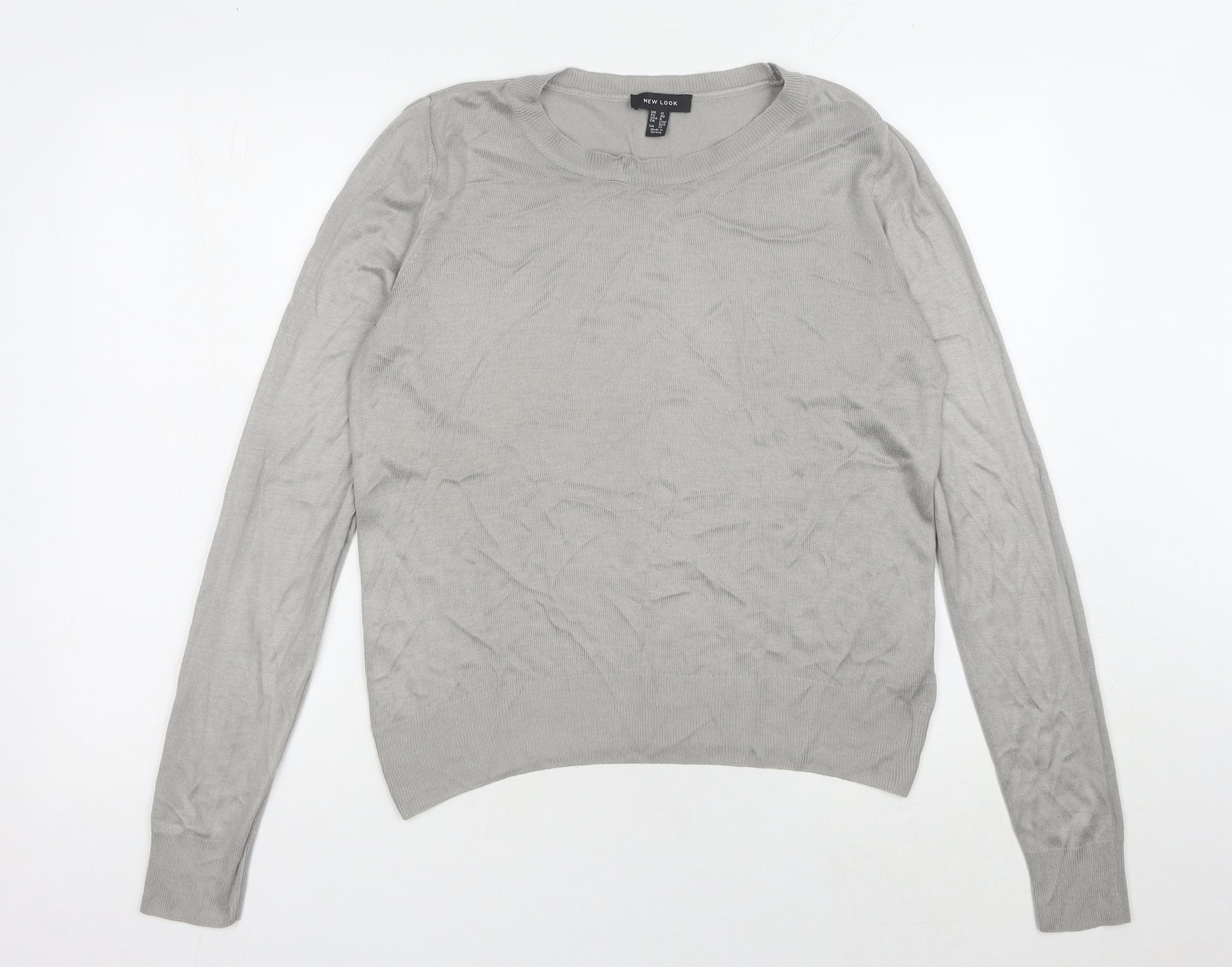 Introducing a stylish and versatile piece by New Look, this women's grey pullover jumper is a must-have for your wardrobe. Designed for comfort and everyday wear, it features a regular fit that suits most body types. The timeless grey colour makes it easy to pair with a range of outfits, from jeans to skirts, ensuring you are ready for any casual occasion. The jumper is crafted from a blend of 82% viscose and 18% nylon, making it lightweight and perfect for layering in autumn and spring. With a classic crew neckline and long sleeves, this knitwear offers a chic and understated look. Although the item is in excellent condition, there are slight wrinkles present, typical of gently worn clothing, but rest assured it upholds the quality you'd expect. Machine washable for easy care, it's a convenient addition to your clothing collection. Don't miss out on this New Look pullover that combines comfort, affordability, and style effortlessly.