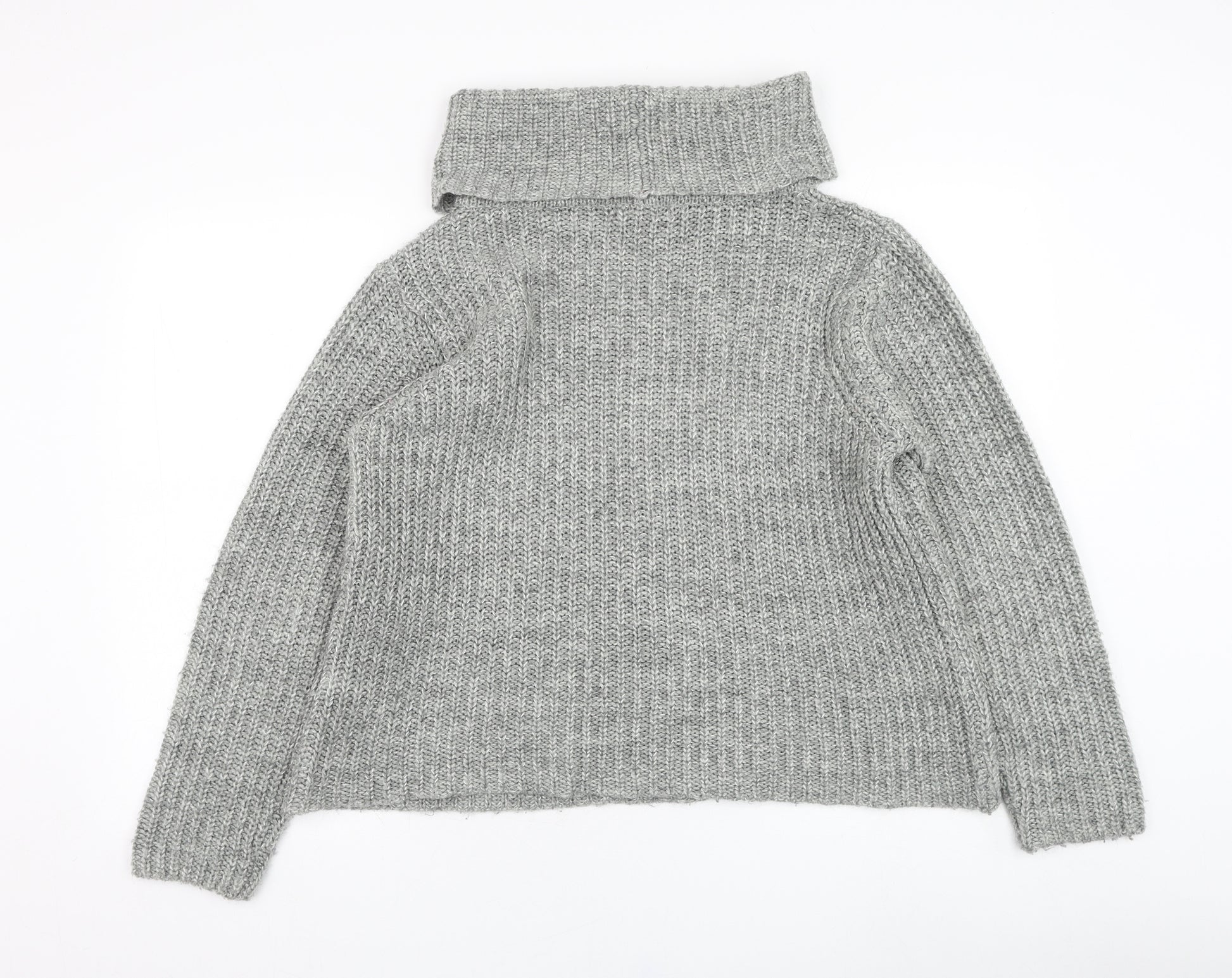 Womens Grey Roll Neck Acrylic Pullover Jumper Size 12