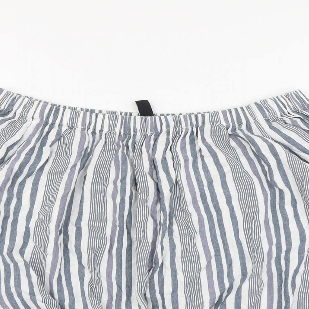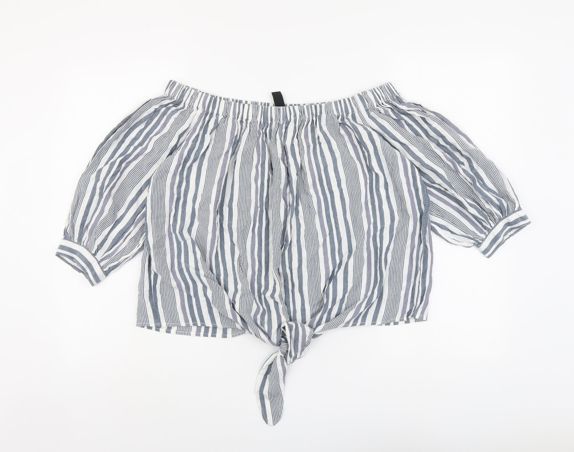 Womens Grey Striped Viscose Basic Blouse Size 14 Off the Shoulder - Knot Front