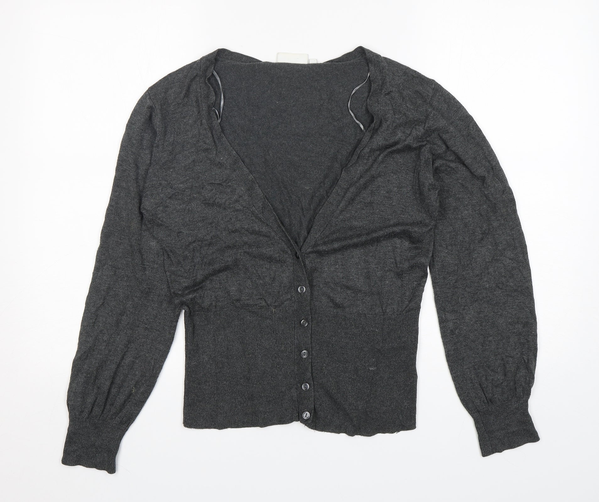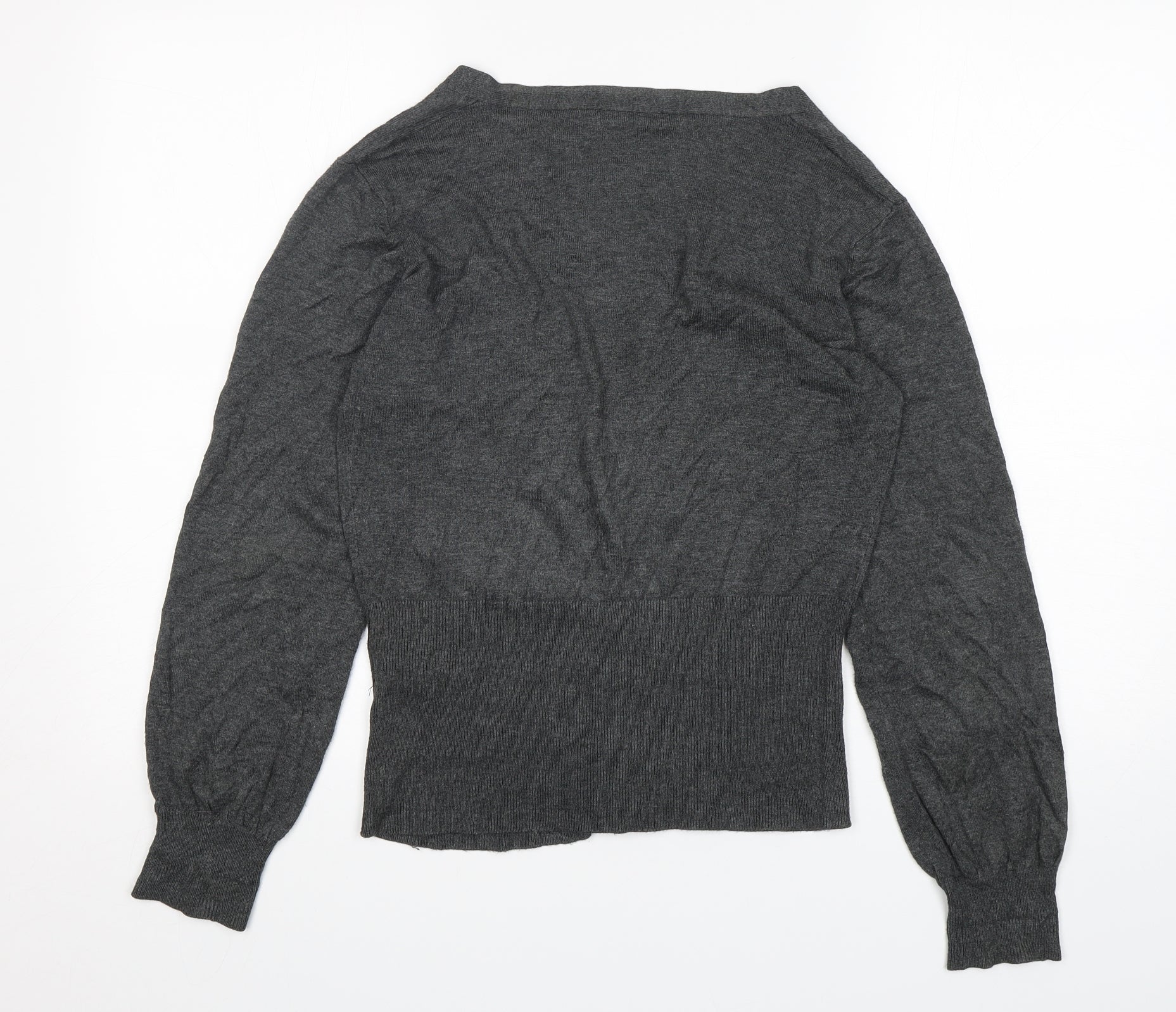 Womens Grey V-Neck Viscose Cardigan Jumper Size 12