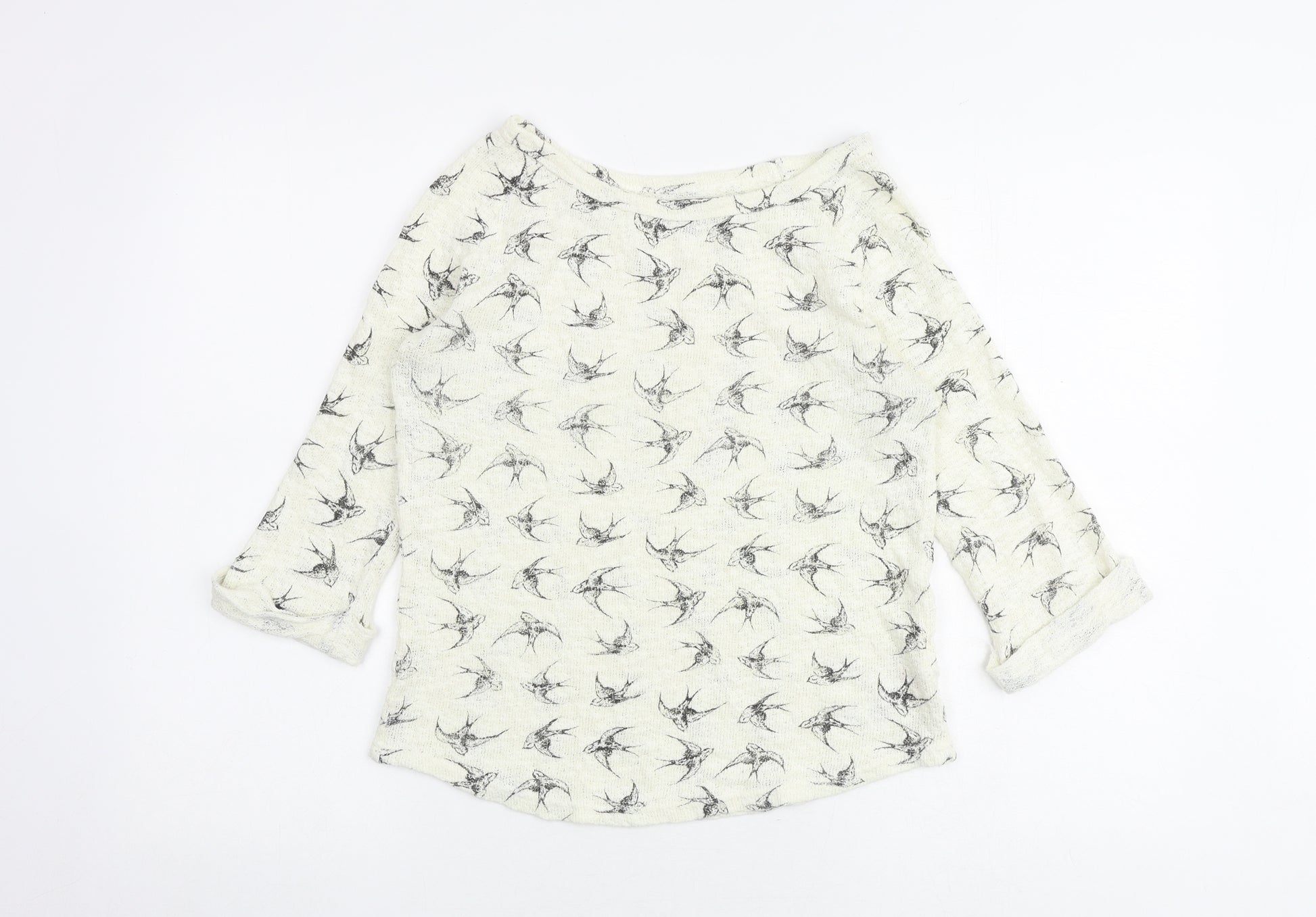 Womens Ivory Boat Neck Geometric Cotton Pullover Jumper Size 8 - Bird pattern