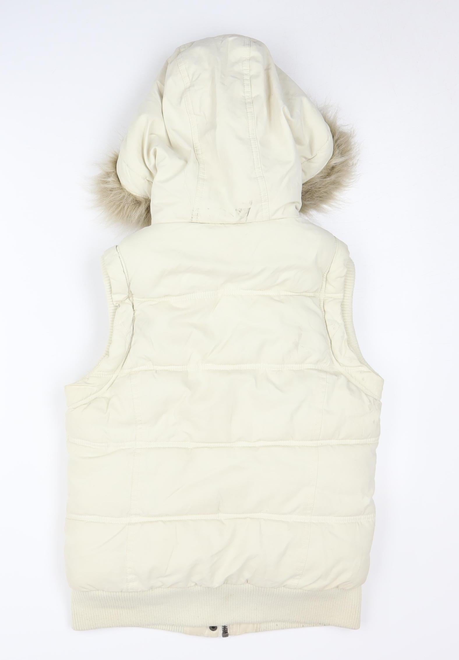 Snuggle into the stylish warmth of this New Look ivory puffer waistcoat, designed to add a chic touch to your winter wardrobe. Ideal for women who appreciate fashion with functionality, this mid-length waistcoat is perfect for casual winter outings. Made from durable polyester, its puffer style is crafted to provide cozy comfort without compromising on style. The sleeveless design is complemented by a hood lined with luxurious faux fur trim, offering an extra shield against the chilly winter air. The waistcoat features a zip closure, allowing for easy wear, while the pockets provide functional storage for small essentials. The light ivory shade adds a soft, sophisticated touch, making it versatile to pair with numerous other wardrobe staples. Ready for machine washing, the garment promises hassle-free upkeep, perfect for the busy modern lifestyle. Grab this fashionable and practical piece and enjoy the winter in comfort and style.