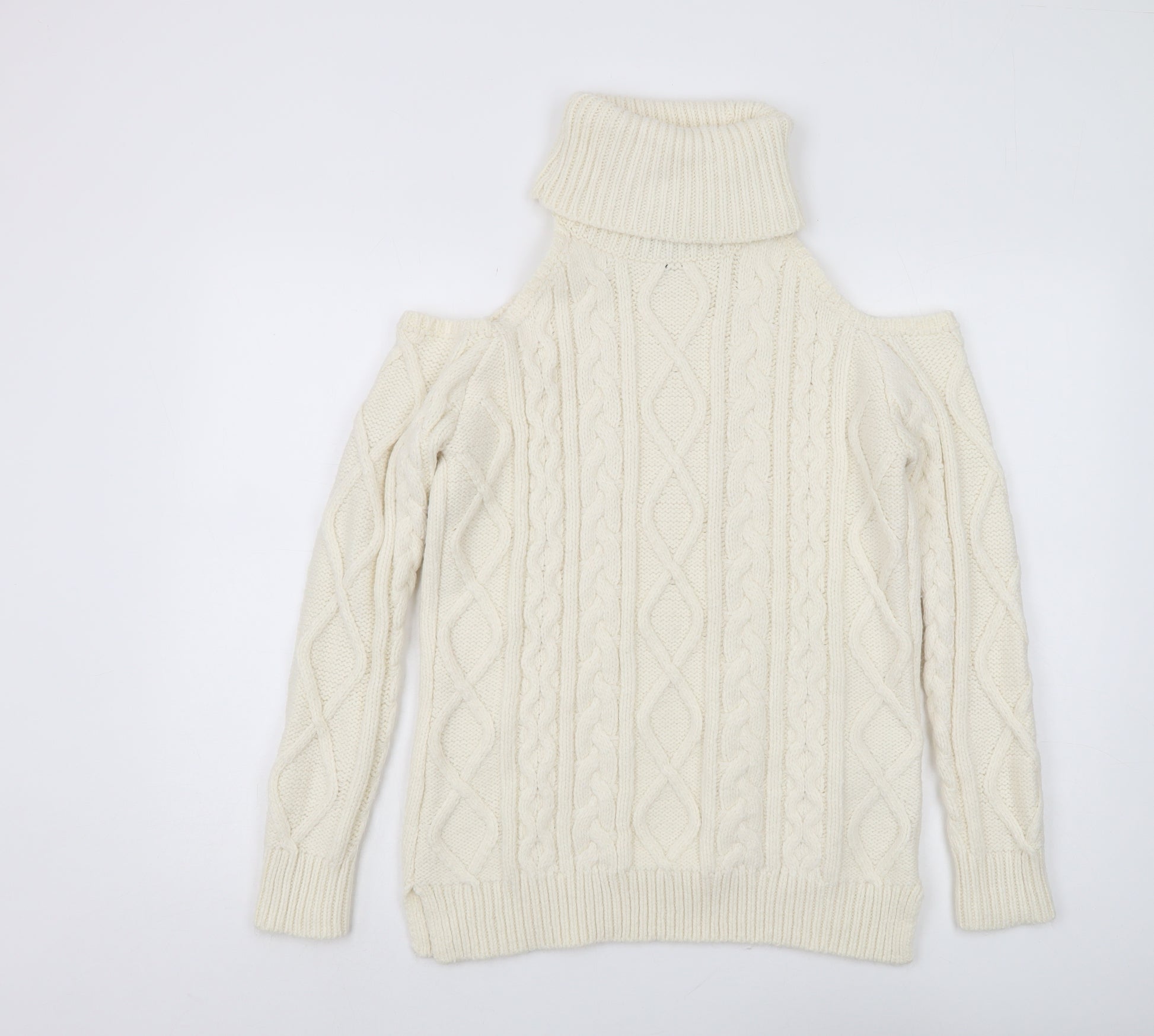 Women's Ivory Roll Neck Cold Shoulder Jumper M