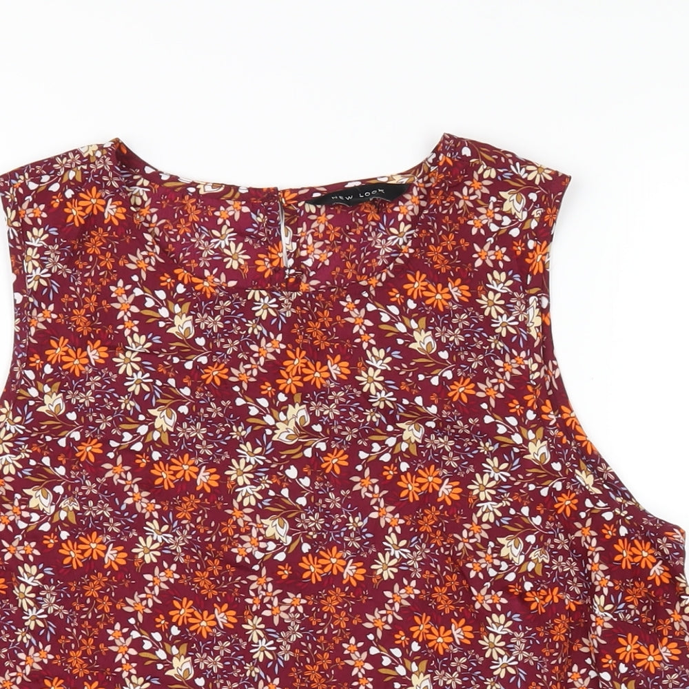 Womens Multicoloured Floral Polyester Basic Tank Size 12 Round Neck