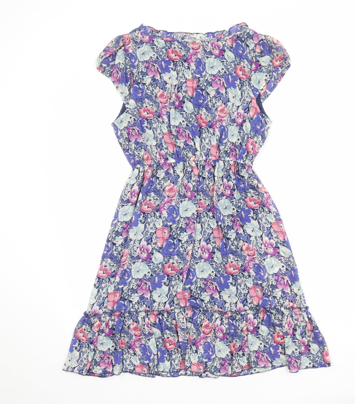 Womens Multicoloured Floral Polyester Fit & Flare Size 12 Boat Neck Pullover