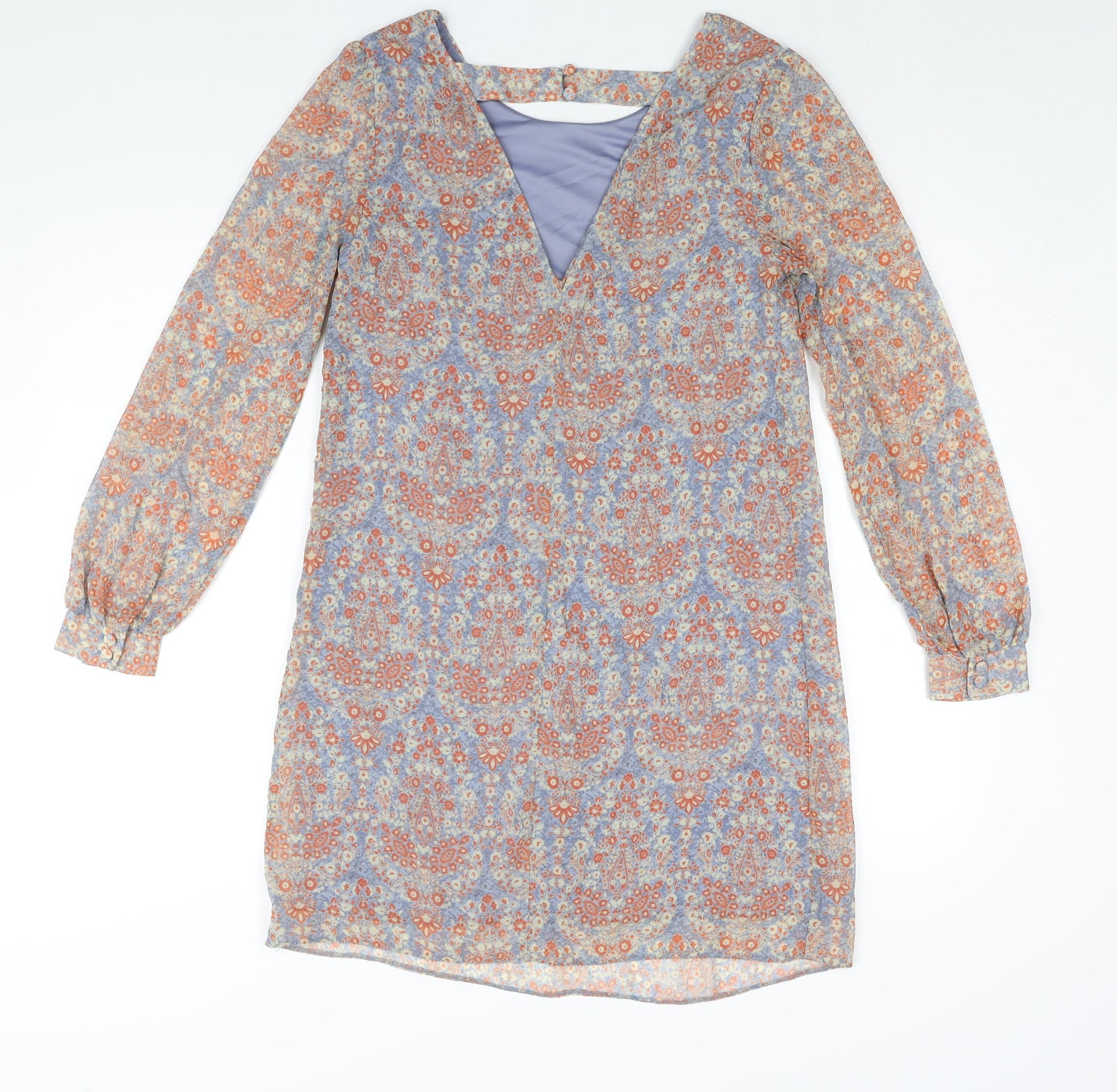 Womens Multicoloured Floral Polyester Shift Size 10 Round Neck Button - Open Back