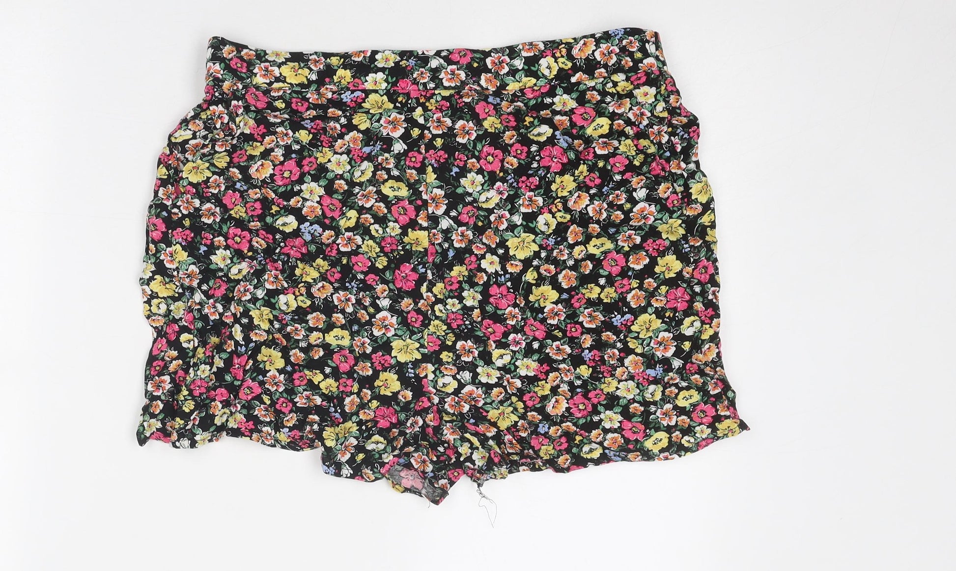 Womens Multicoloured Floral Viscose Basic Shorts Size 14 Regular Pull On