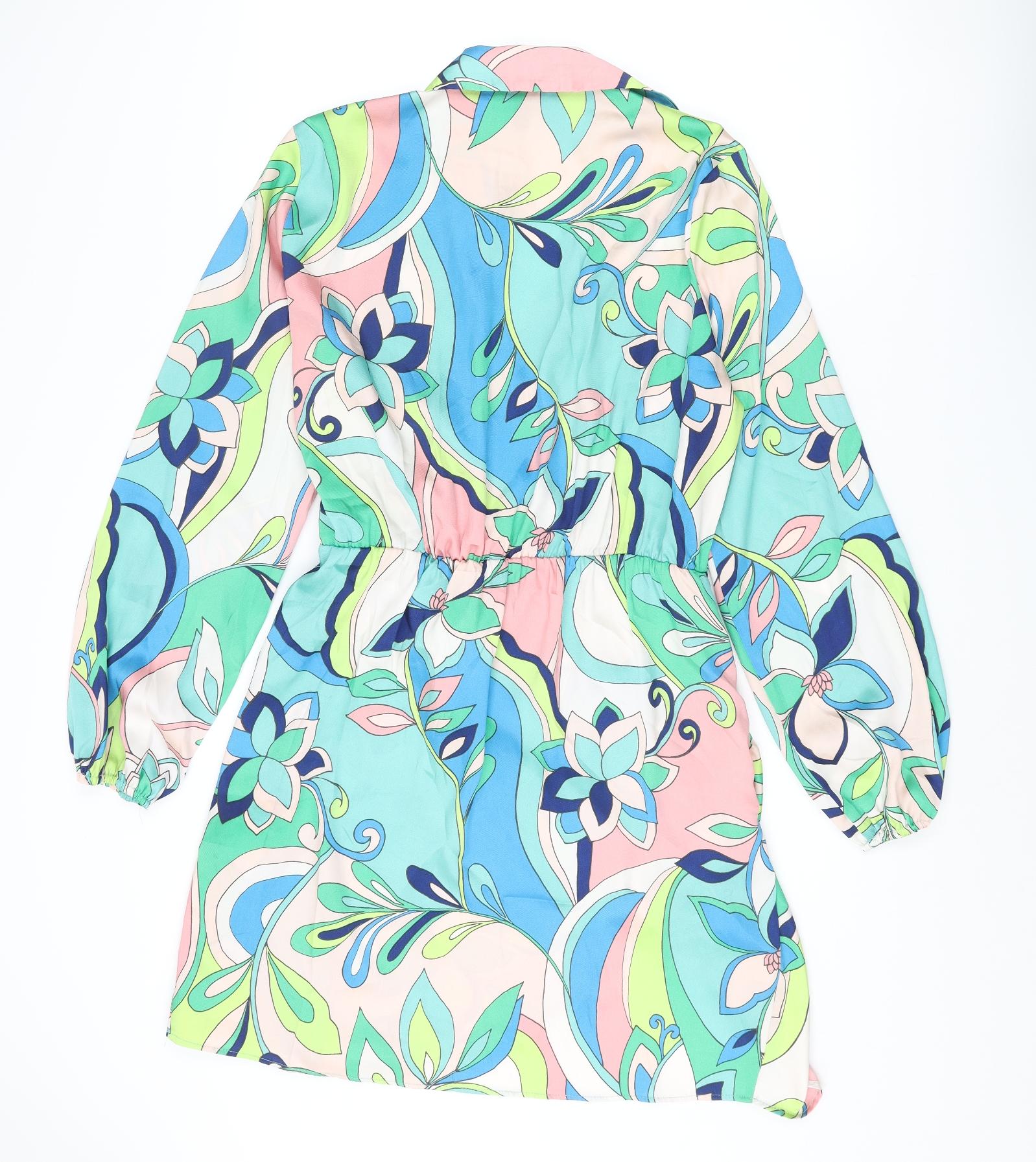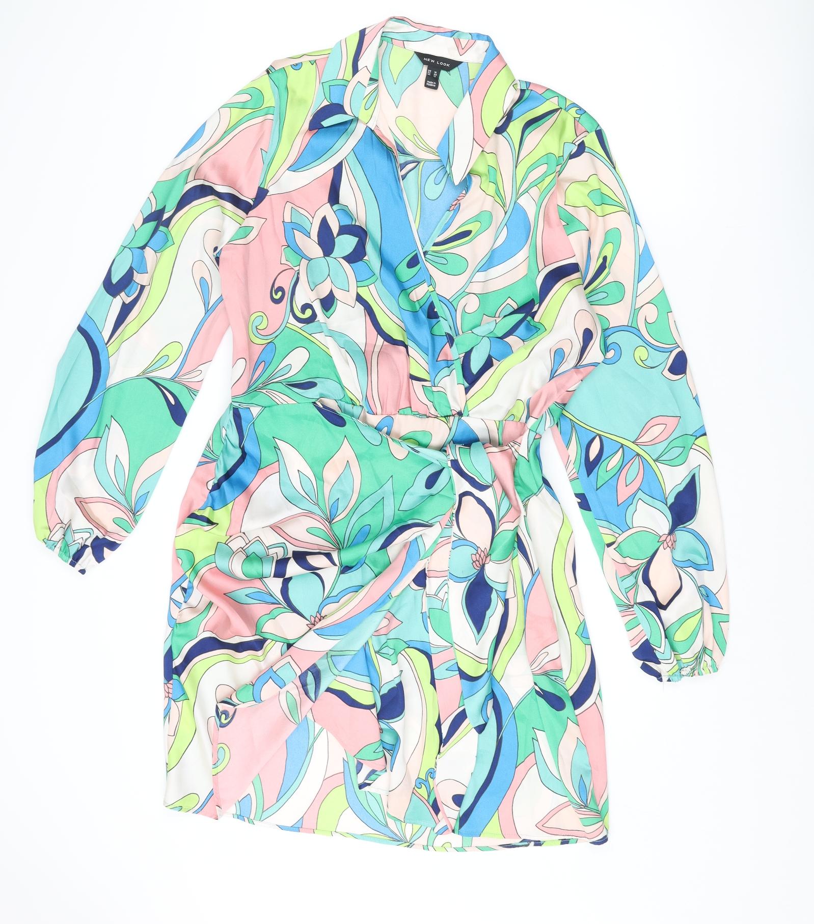 Womens Multicoloured Geometric Polyester Wrap Dress Size 16 Collared Pullover