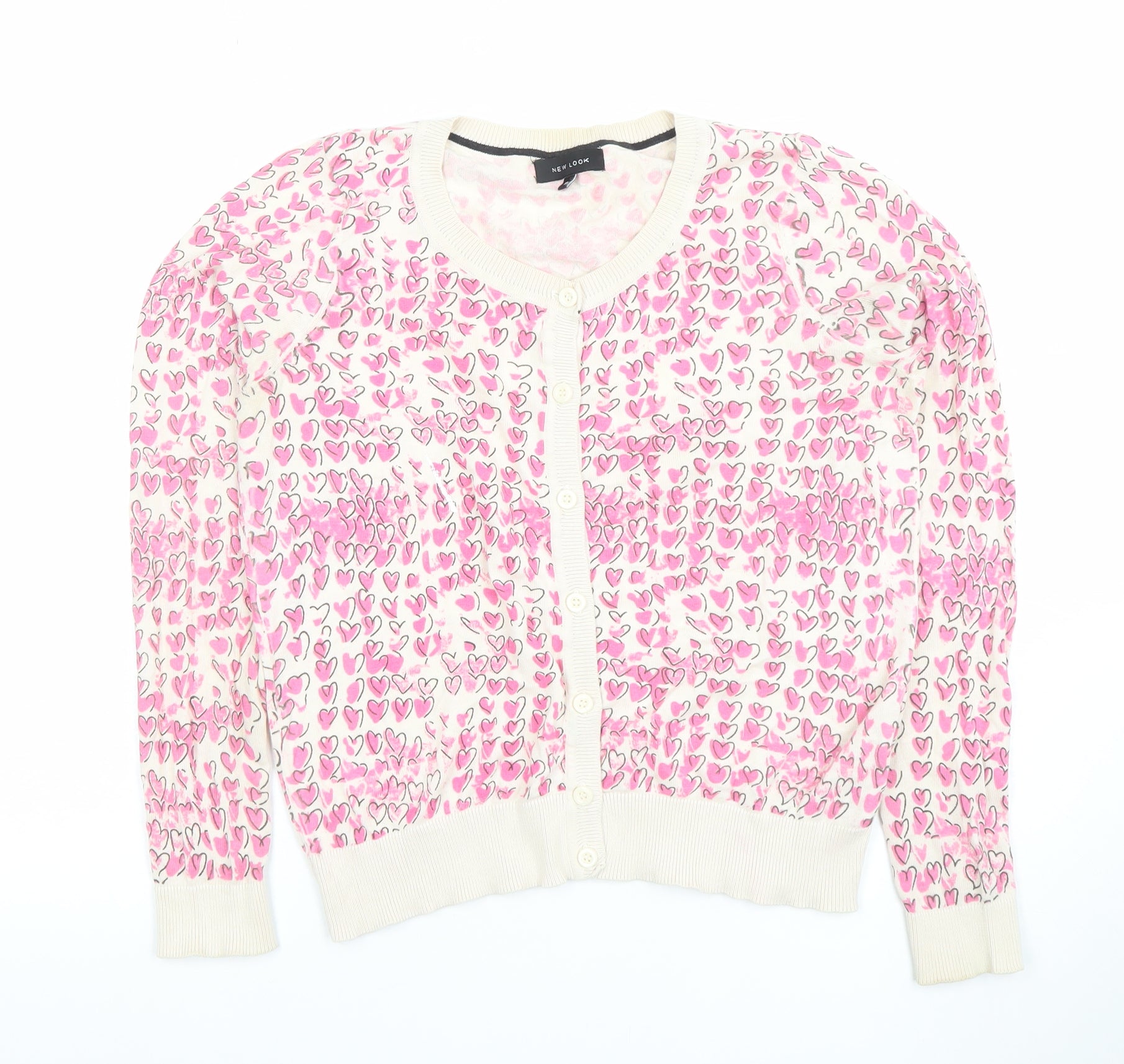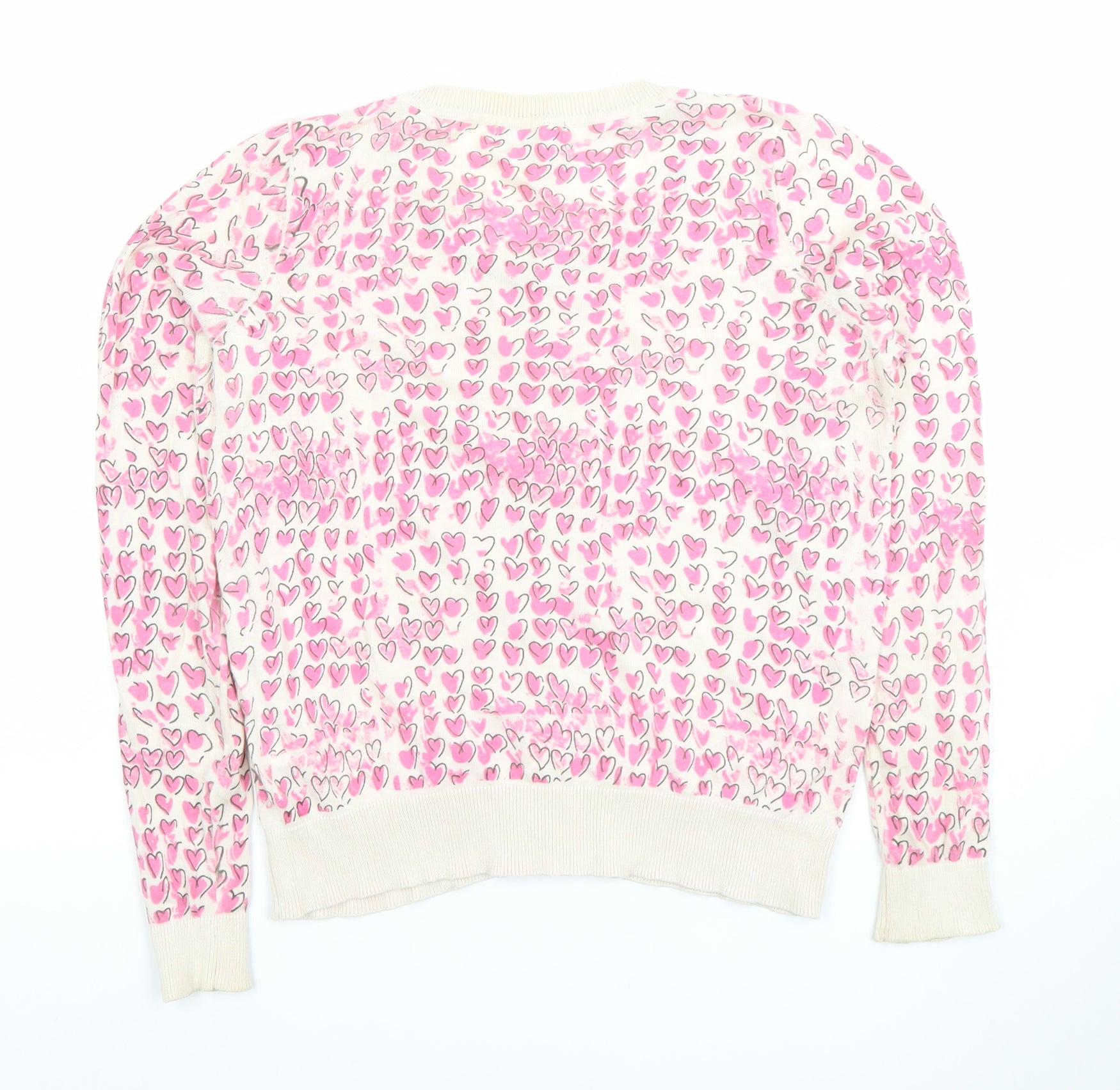 Women's Multicoloured Heart Print Cotton Cardigan Size 10