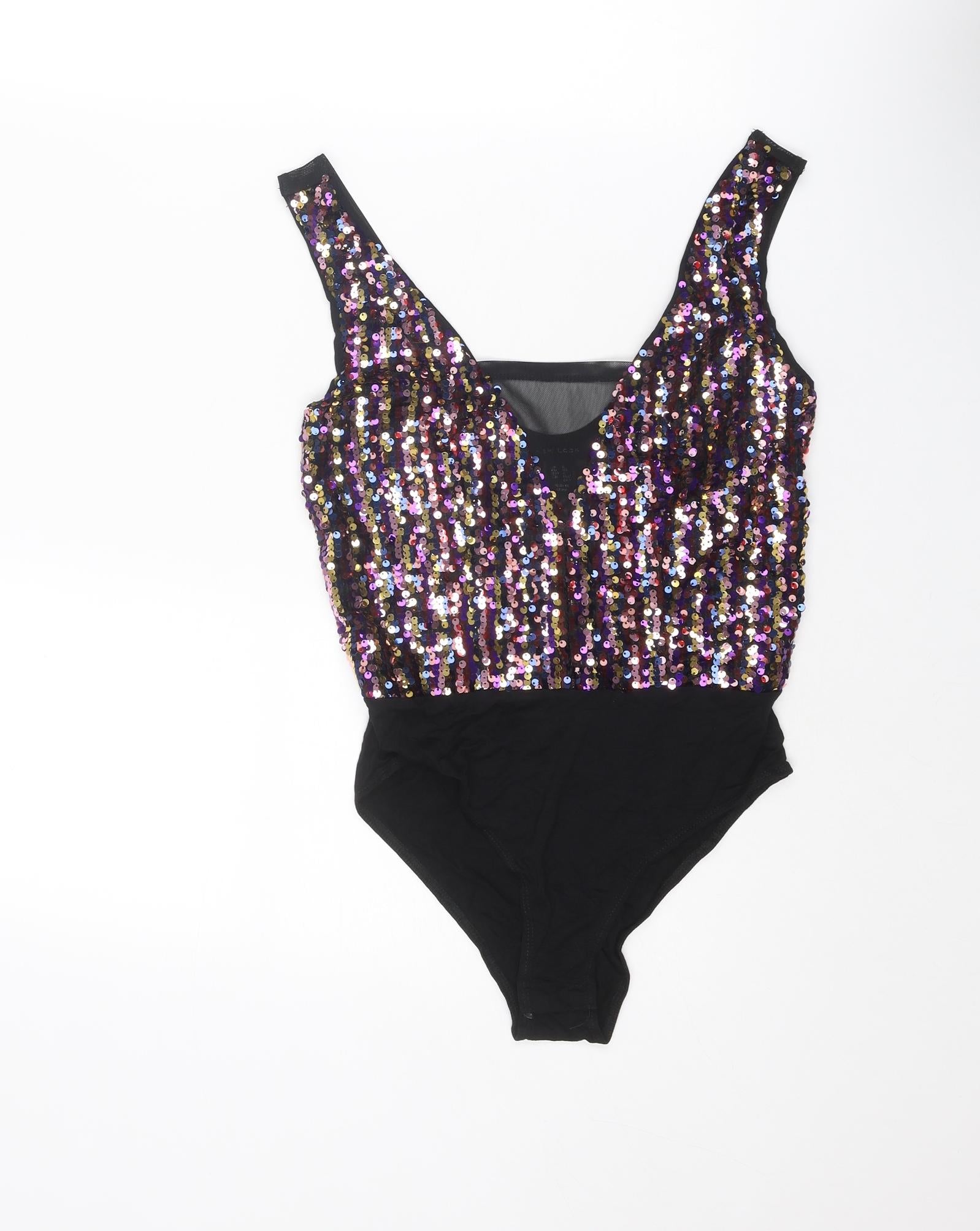 Womens Multicoloured Polyester Bodysuit One-Piece Size 8 Snap