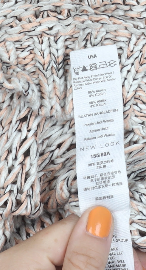 Discover the perfect blend of comfort and style with this New Look Women's Pullover Jumper. Crafted for the modern woman, this jumper is a versatile addition to your wardrobe. Made from a soft, open-knit fabric, it features 96% acrylic and 4% cotton, offering a light and cosy feel against the skin. Its multicoloured design makes it a standout piece, perfect for pairing with any casual outfit.The jumper boasts a classic crew neckline for a timeless look, while the long sleeves ensure warmth and comfort in cooler weather. This piece is designed with a regular size fit, ensuring it drapes beautifully on the body, and the open-knit style adds a touch of texture and character to the overall design.Although gently used, this jumper is in excellent condition, showing only minimal signs of wear, with no noticeable defects or damage. It is an ideal choice for casual outings, whether you're heading to a relaxed brunch or a casual day out shopping.Embrace effortless style with this New Look pullover, a versatile piece that perfectly complements any fashionable wardrobe. Don't miss out on adding this chic jumper to your collection.