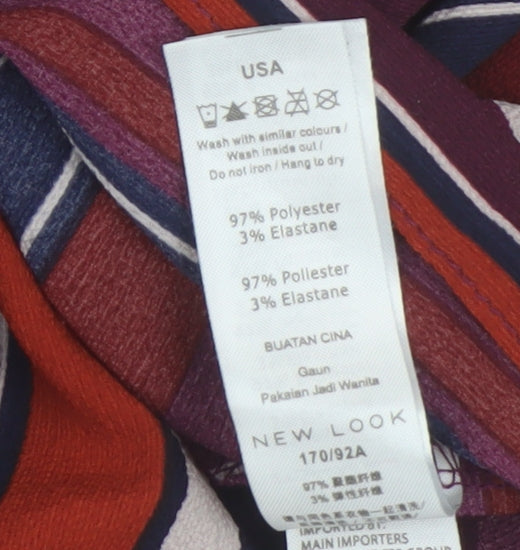 Introducing a chic addition to your wardrobe, this New Look women's off-the-shoulder shift dress combines elegance with modern styling. Perfectly designed in a vibrant multicoloured striped pattern, this dress is crafted from a breathable woven fabric blend of 97% polyester and 3% elastane, ensuring both comfort and durability. Its lightweight nature makes it ideal for everyday wear across various occasions, whether you're heading out for a casual lunch or attending an informal gathering. The short-sleeve design and regular fit provide a relaxed yet flattering silhouette, further enhanced by the trendy off-the-shoulder neckline. Easy to maintain, this dress is machine washable, allowing for hassle-free care. In excellent condition with no visible tags attached, this versatile piece is ready to enhance your ensemble. Seize the opportunity to explore refreshing styling options with this eye-catching dress, perfect for injecting a playful yet sophisticated touch into your day-to-day fashion.