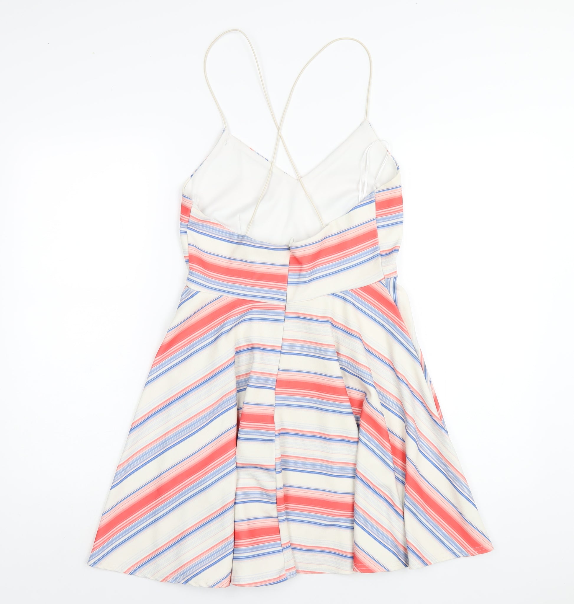 Womens Multicoloured Striped Polyester A-Line Size 12 V-Neck Zip