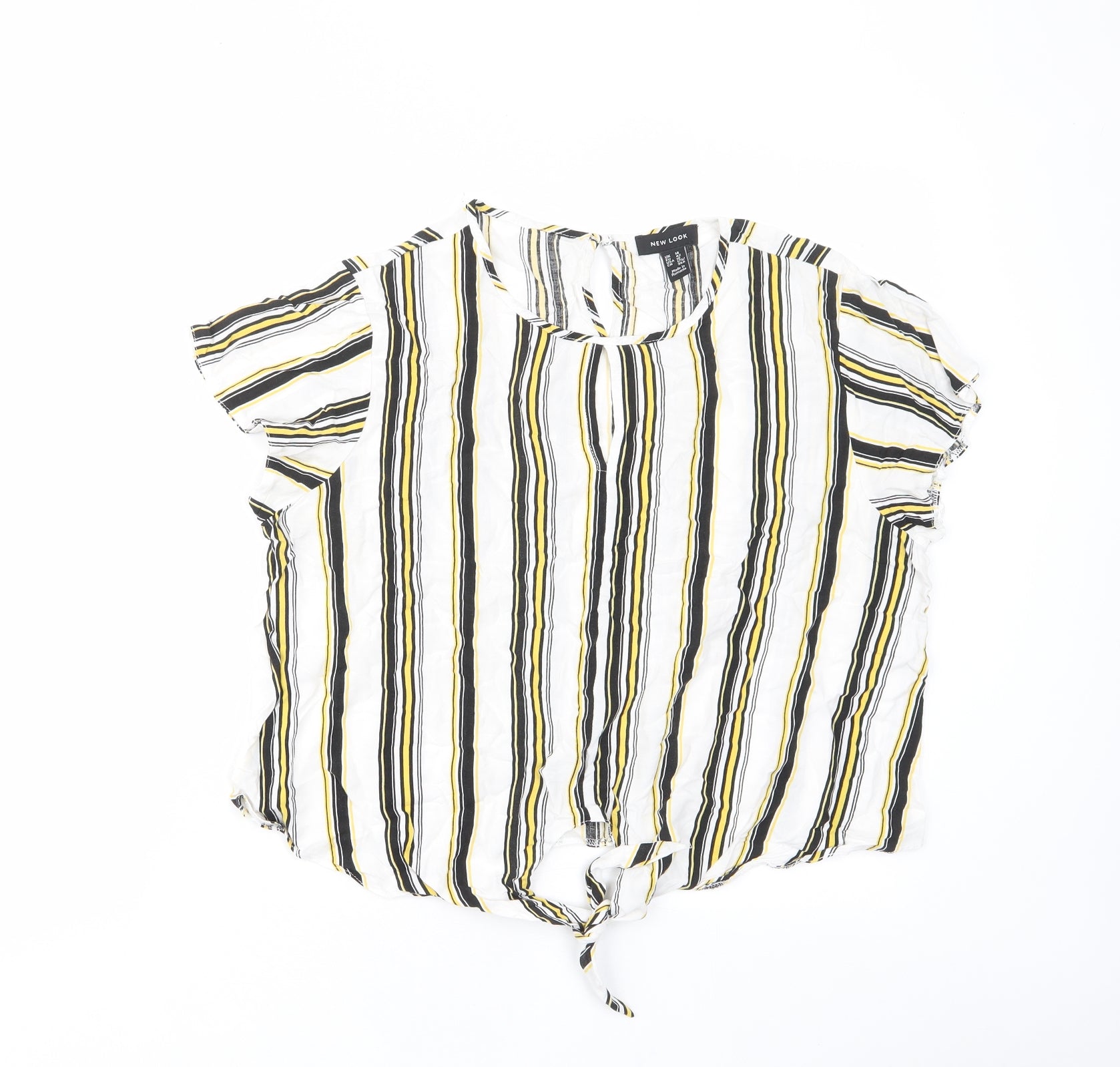 Womens Multicoloured Striped Viscose Basic T-Shirt Size 14 Crew Neck - Tie Front