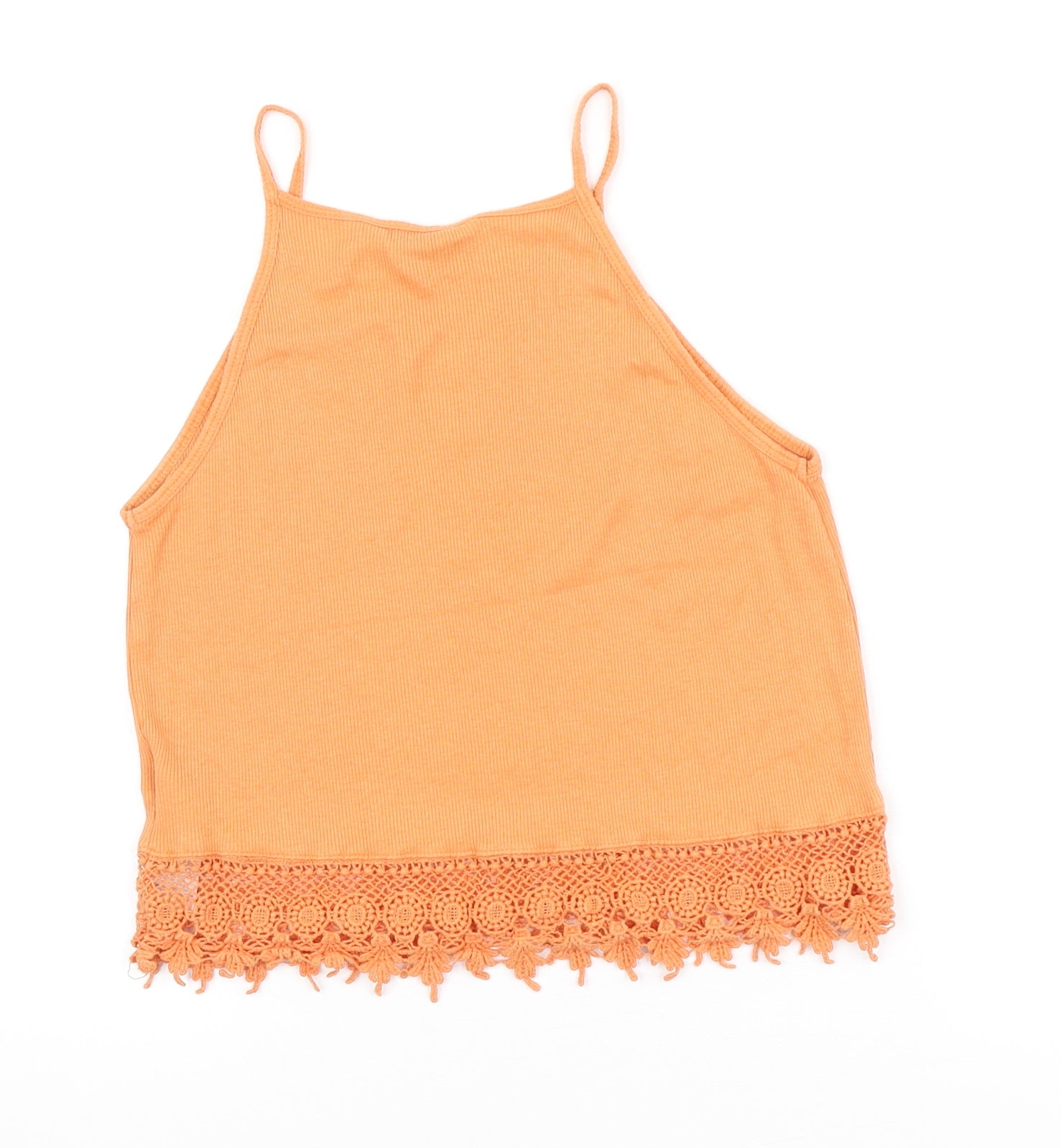 Womens Orange Cotton Camisole Tank Size 8 Round Neck - Lace Trim detail