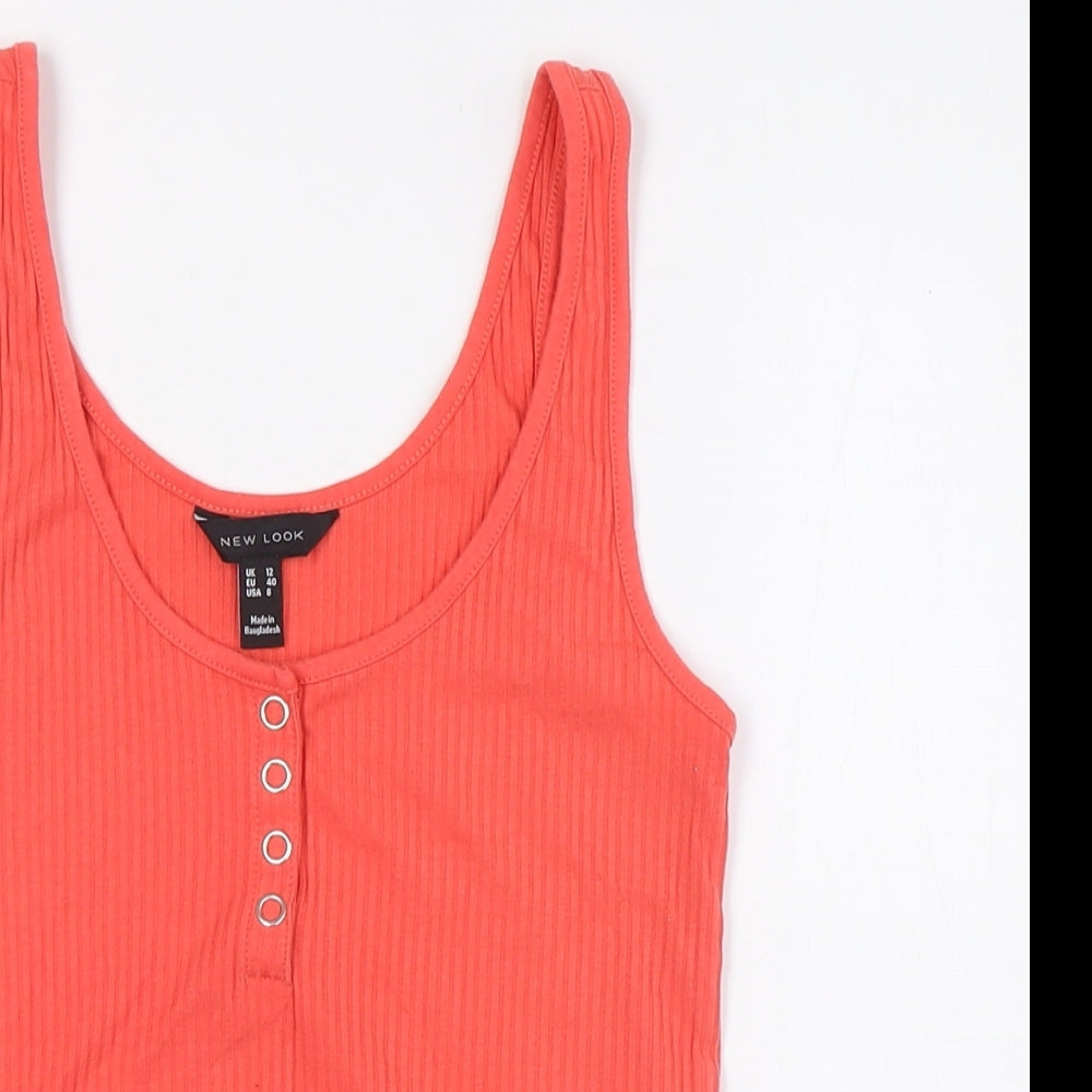 Womens Orange Polyester Basic T-Shirt Size 12 Scoop Neck - Ribbed
