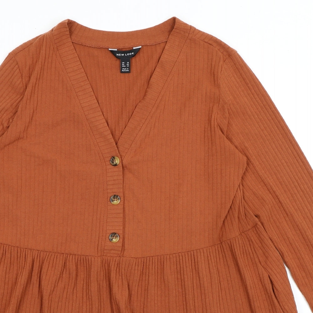 Womens Orange Polyester Shift Size 18 V-Neck Button - Ribbed