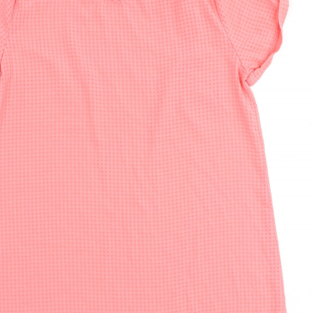 Womens Pink Check Polyester Basic Blouse Size 12 Round Neck