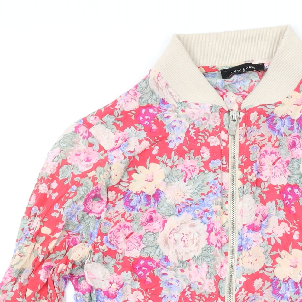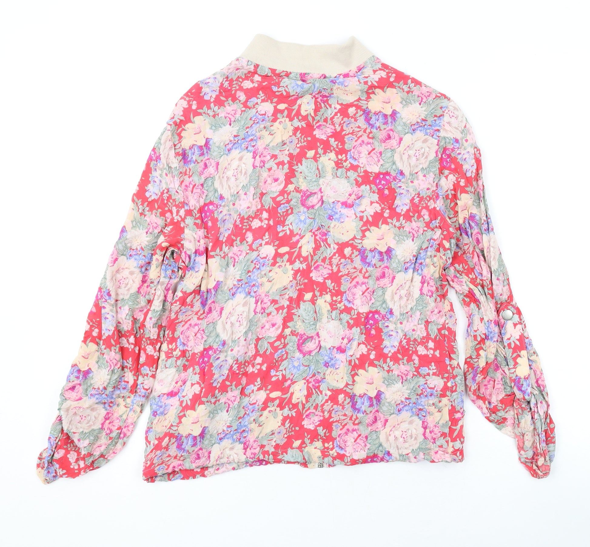 Womens Pink Floral Viscose Basic Blouse Size 10 V-Neck