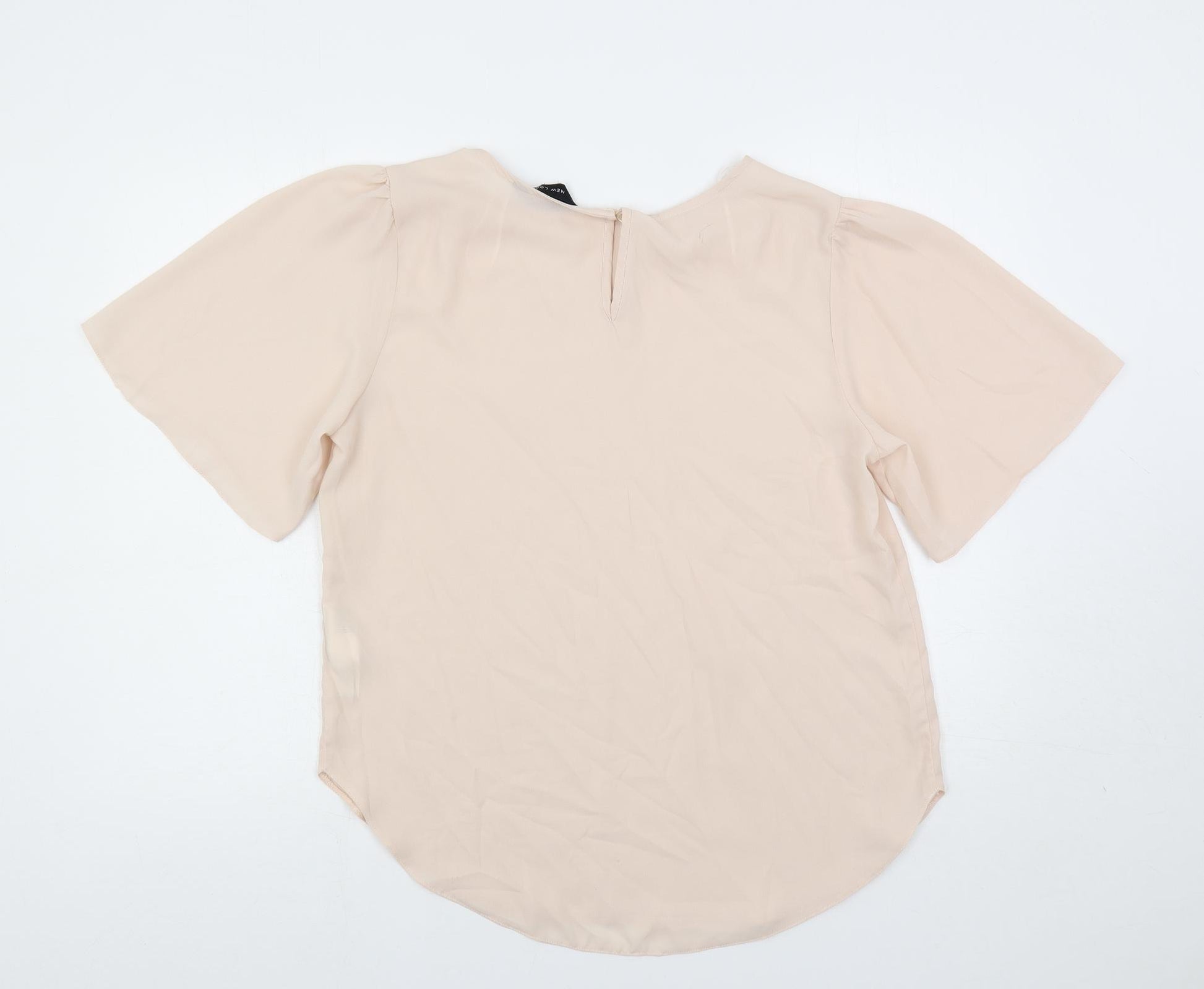 Womens Pink Polyester Basic Blouse Size 14 Round Neck - Flare Sleeve