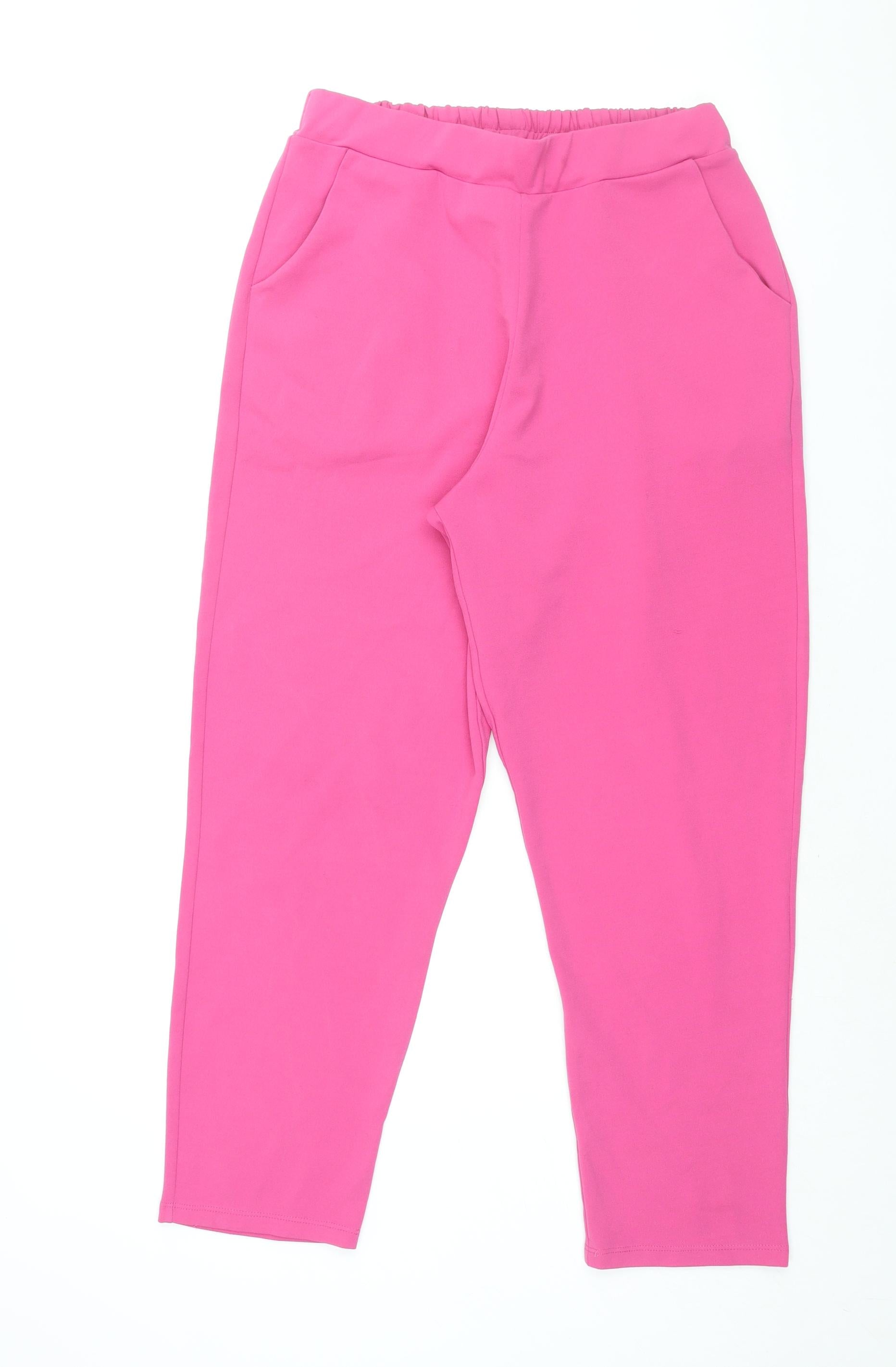 Womens Pink Polyester Trousers Size 14 L28 in Regular