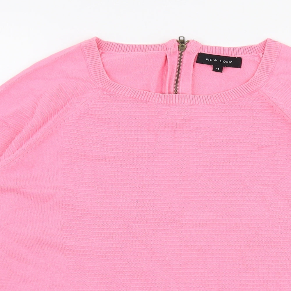 Womens Pink Round Neck Viscose Pullover Jumper Size 14