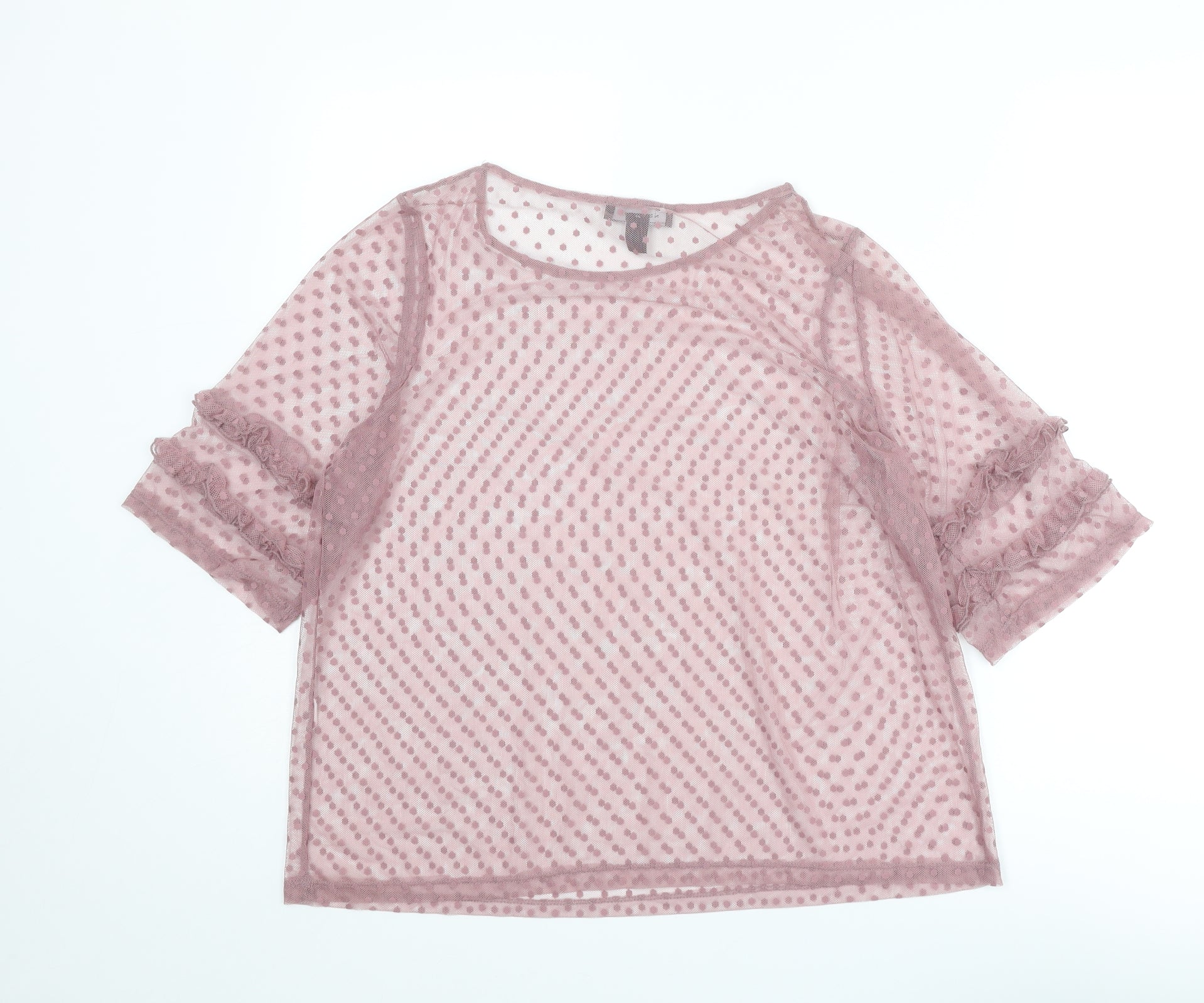 Womens Purple Polka Dot Polyester Basic Blouse Size 14 Boat Neck