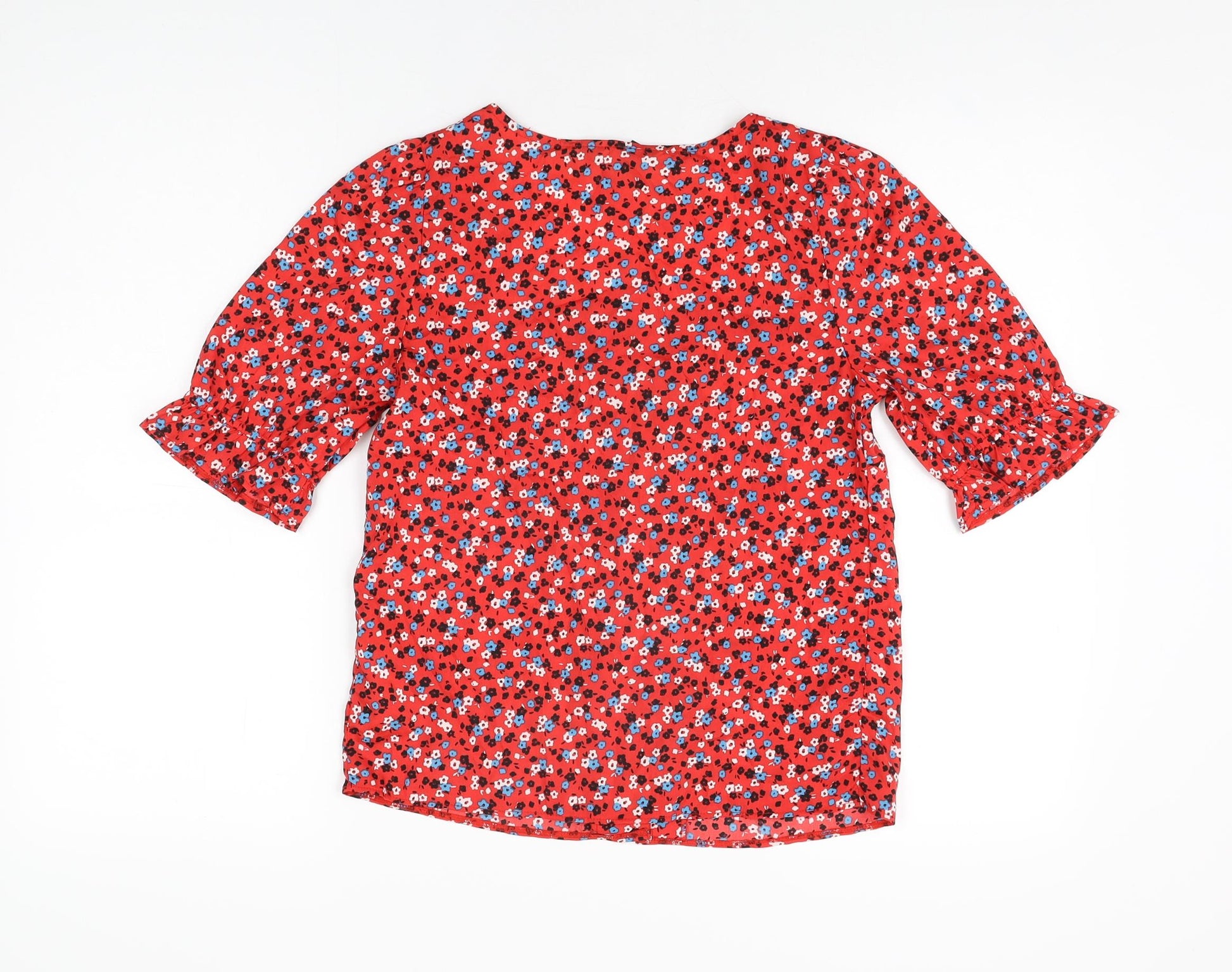 Womens Red Floral Polyester Basic Button-Up Size 6 Square Neck