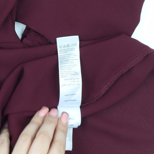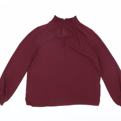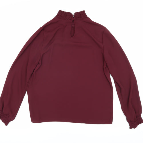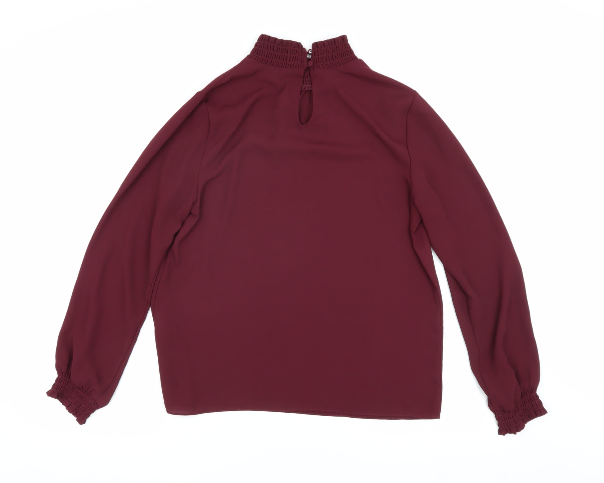 Elevate your wardrobe with this striking burgundy high-neck blouse from New Look, designed for women with a regular fit in mind. Perfect for casual autumn and spring outings, this blouse features a timeless solid pattern and long, fitted sleeves that offer a touch of sophistication. The high neckline and classic design make it versatile for various occasions like casual meet-ups or workwear settings. Crafted from 100% polyester, it ensures durability and comfort, making it a practical choice. The blouse is machine washable, allowing for easy care and maintenance. Despite being in excellent condition with no visible flaws, its vibrant deep red tone promises to add a pop of colour to your outfit. With a button closure at the back, it combines style and convenience. This piece is ideal for those who appreciate subtle elegance and functionality, ensuring you look effortlessly chic. Indulge in the comfort and modernity of a staple top that speaks volumes in understated elegance.
