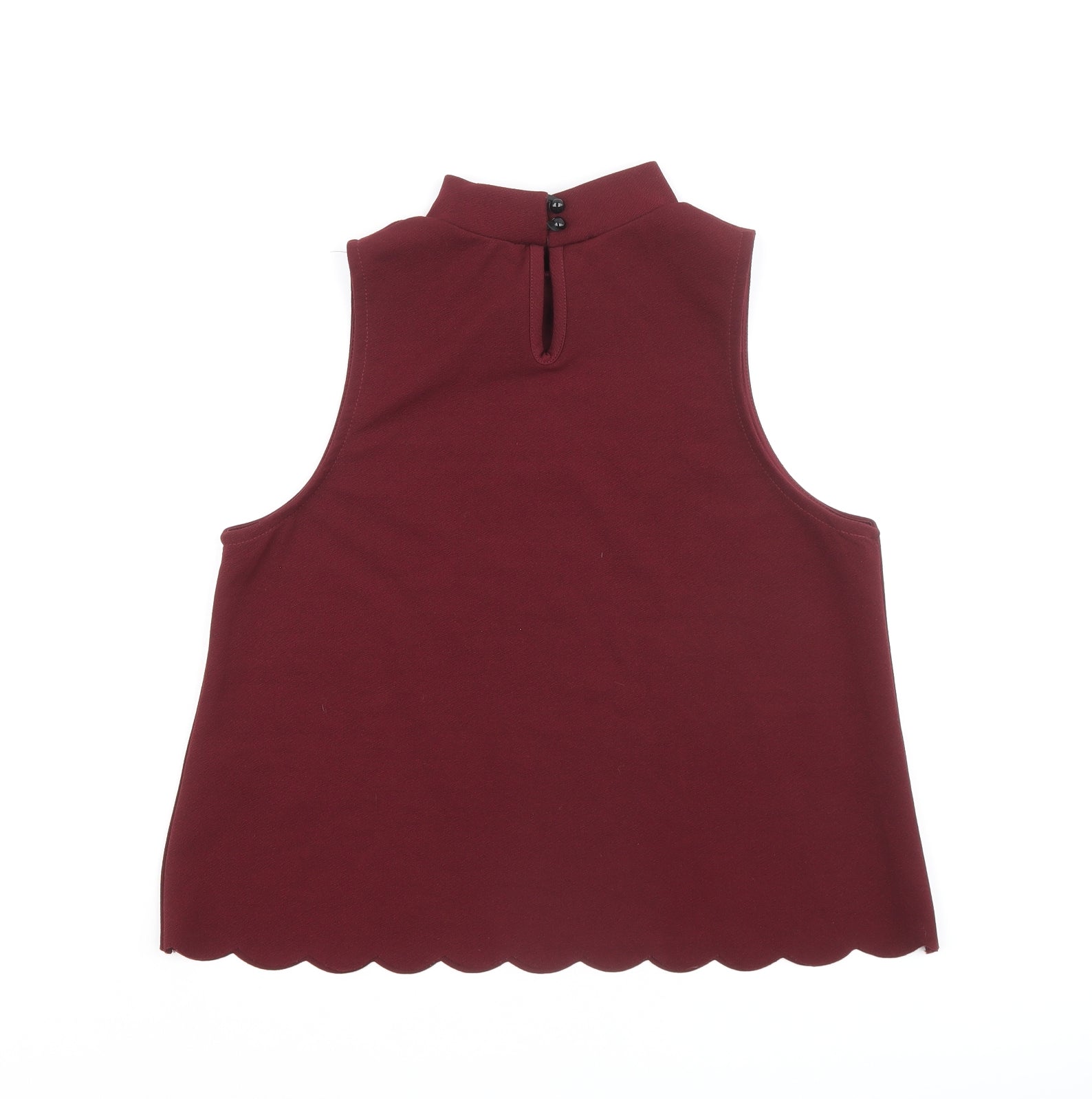 Womens Red Polyester Basic Blouse Size 12 Mock Neck - Scallop Hem