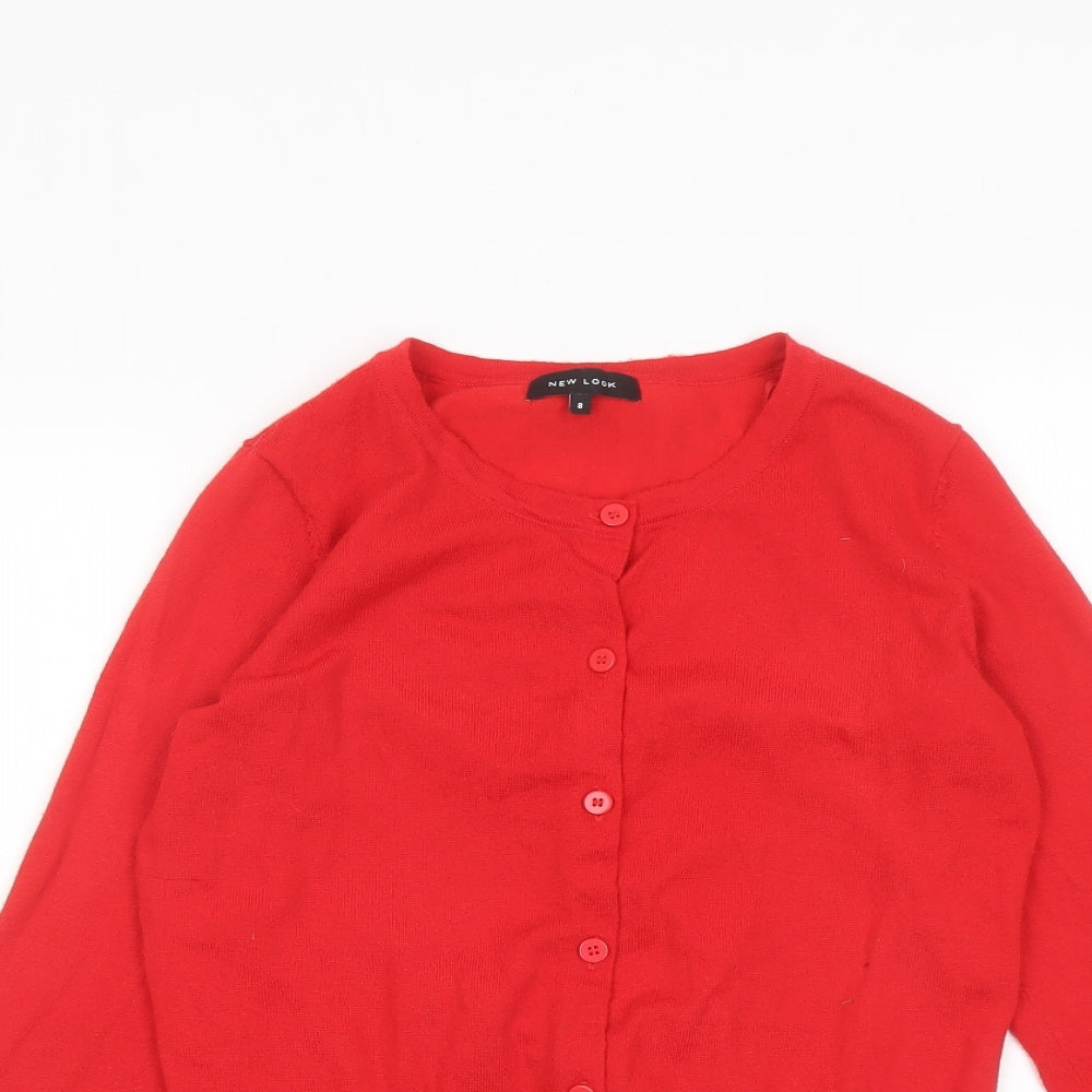 Womens Red Round Neck Polyester Cardigan Jumper Size 8