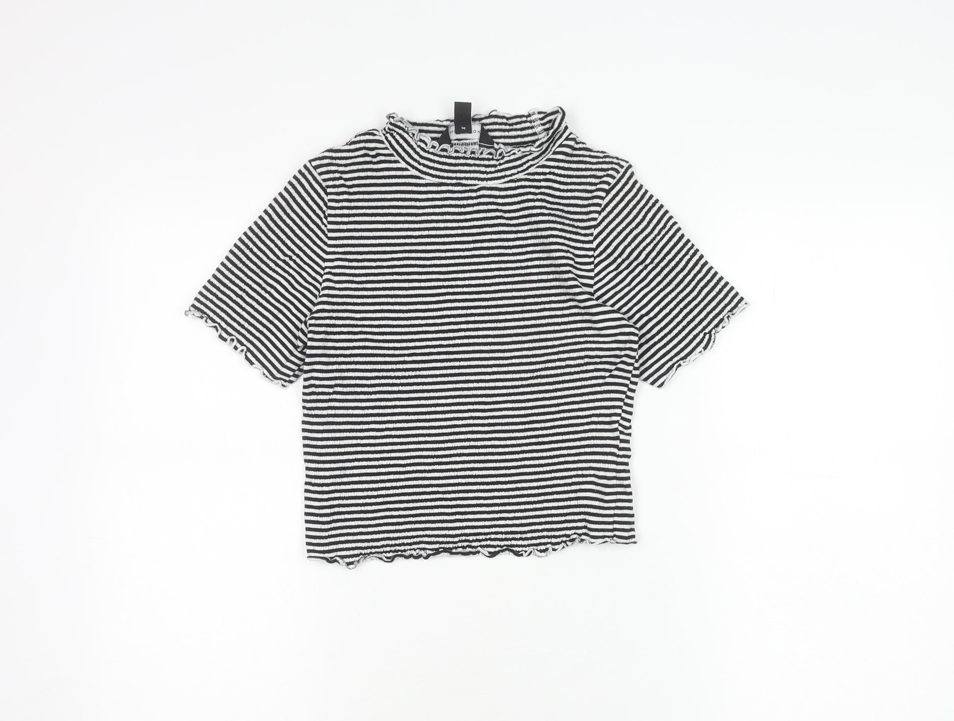 Elevate your casual wardrobe with this stylish New Look women's top, crafted for both comfort and fashion. This eye-catching top features a timeless black and white striped pattern, ensuring you stand out in any crowd. The short sleeves make it perfect for everyday wear, while the casual sleeve design adds a hint of laid-back elegance. Expertly crafted in Bangladesh, this top is made from a soft and breathable blend of 96% cotton, 3% polyester, and 1% elastane, promising comfort throughout the day. Ideal for a regular fit, this size 10 top offers a relaxed silhouette that's easy to pair with your favourite jeans or skirts. Designed with machine washability in mind, care for your garment is a breeze. Whether you're heading out for a casual lunch or running errands, this top is versatile enough to suit any occasion. Add a touch of chic style to your wardrobe with this New Look marvel and enjoy a practical, yet stylish addition to your collection. The striped design remains a timeless classic, ensuring it stays in style season after season. Acquire this wardrobe staple today and redefine everyday elegance at an unbeatable value.