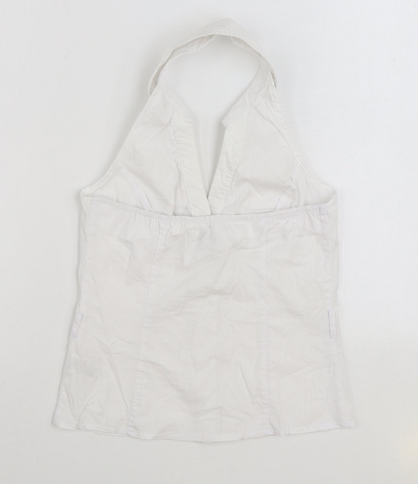 Womens White 100% Cotton Basic Blouse Size 10 Halter