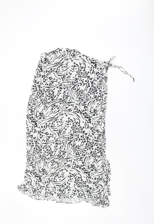 New Look Women’s Black Leopard Print Wrap Midi Skirt Size 12