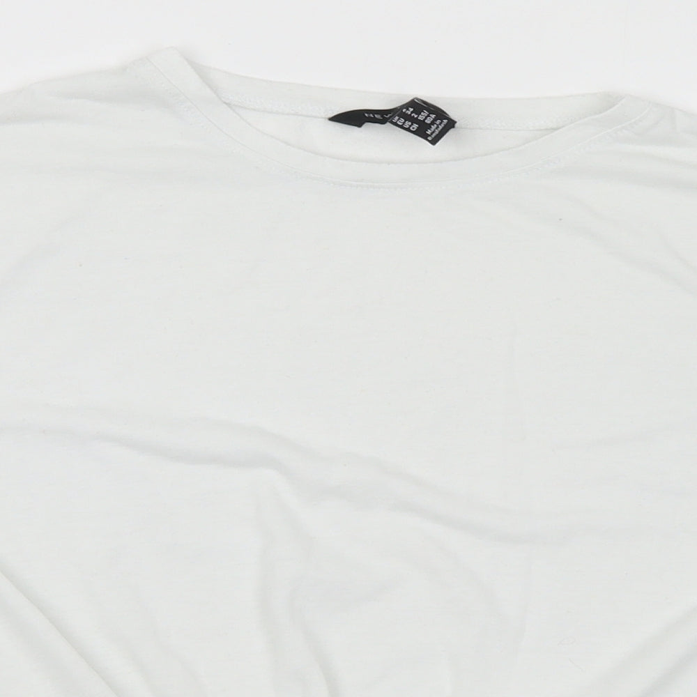 Womens White Polyester Basic T-Shirt Size 6 Round Neck