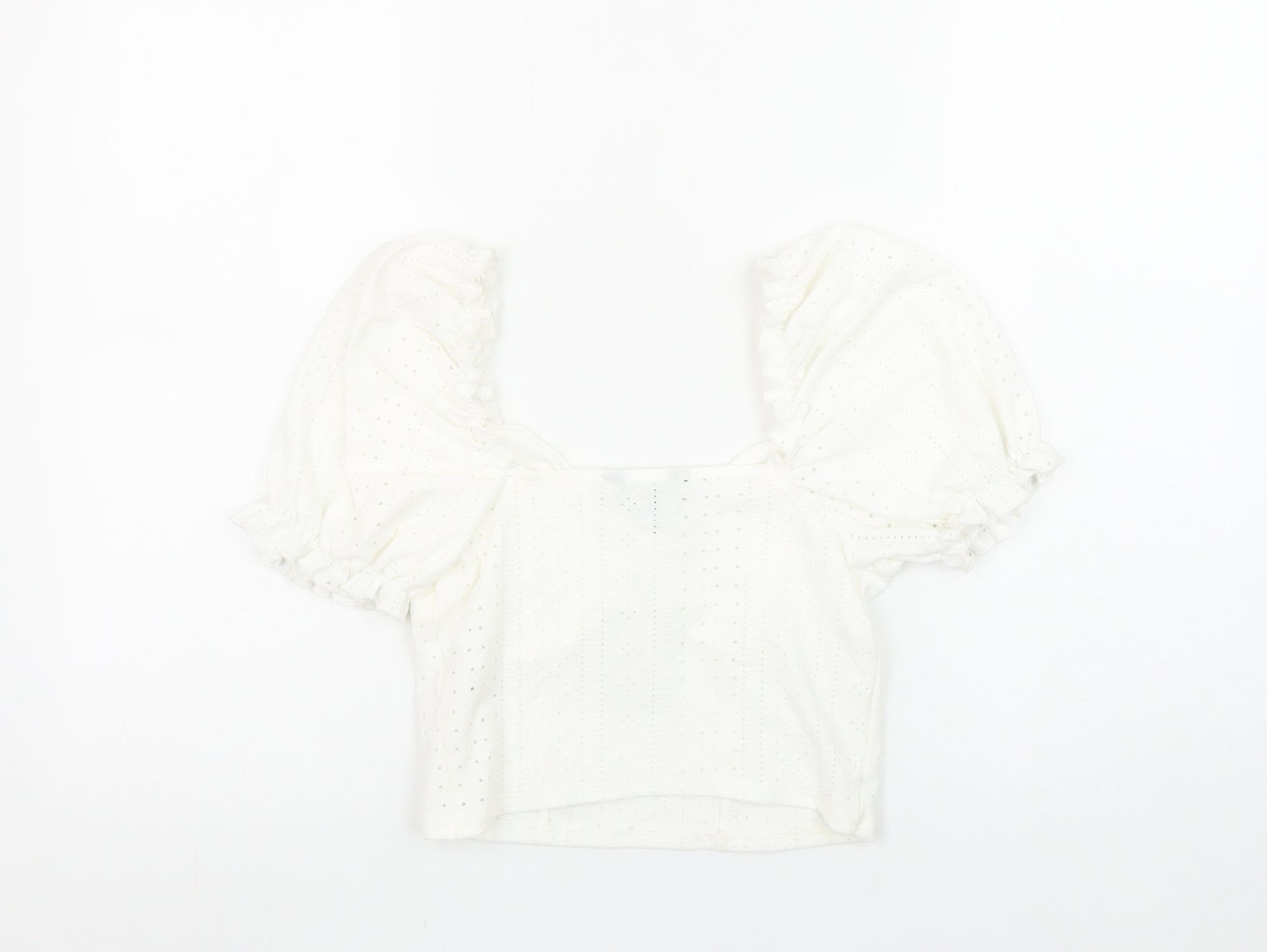 Women's White Puff Sleeve Cropped Blouse Size 10